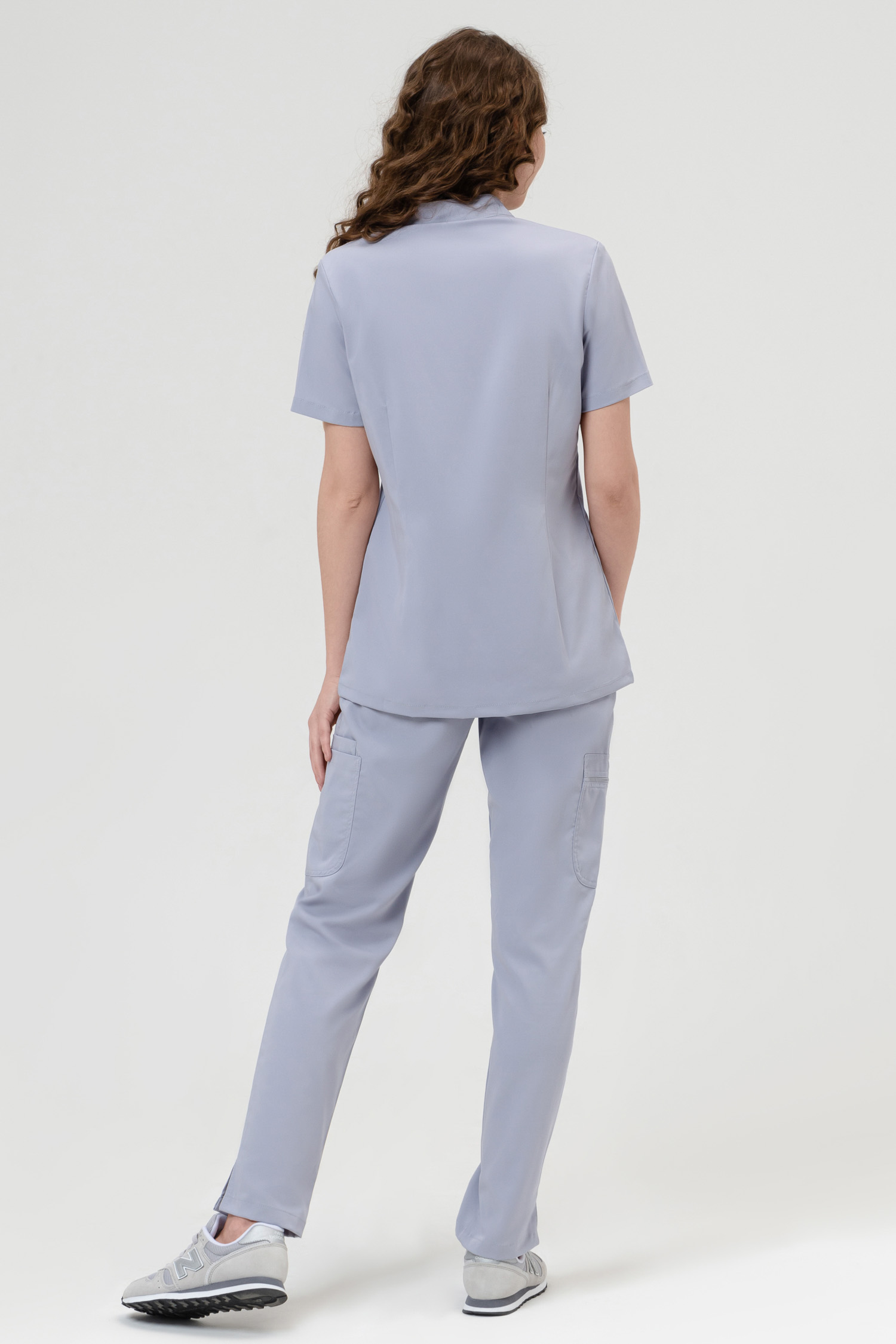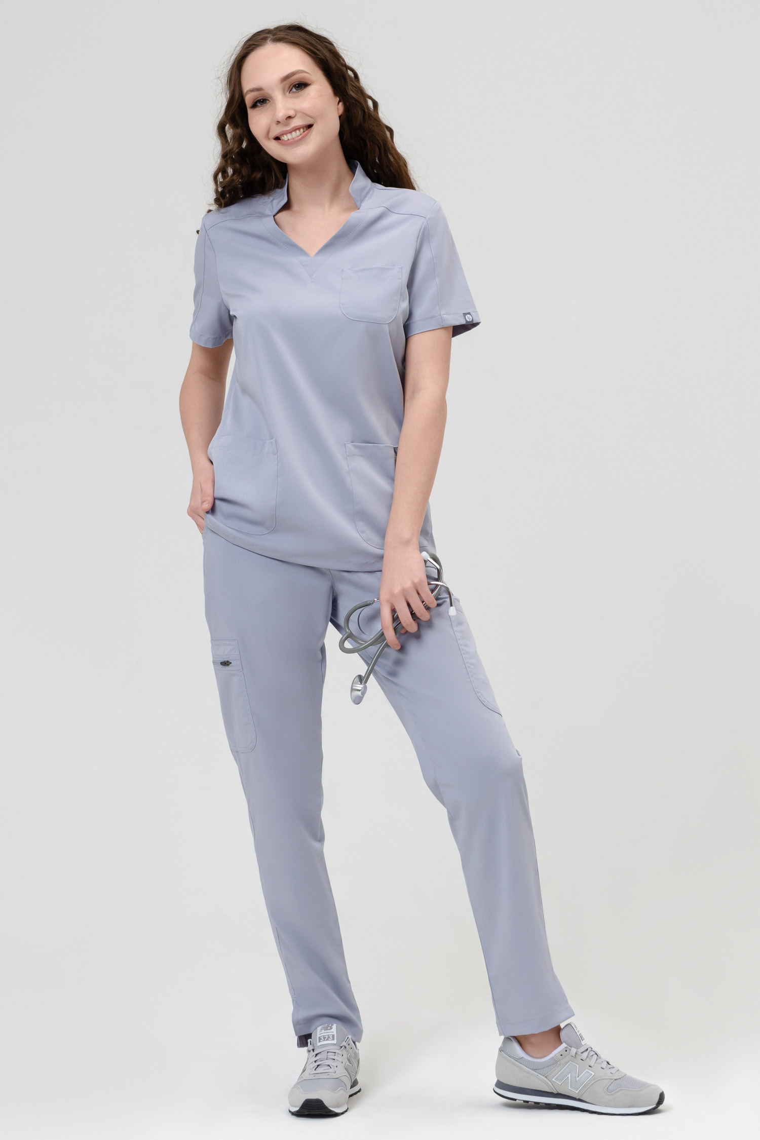 SILVA (52% полиэстер, 45% вискоза, 3% спандекс 170 г/м2) - идеальное сочетание легкости, эластичности и комфорта в одной ткани. Специально разработанная для нашей компании, она идеально подходит для медицинской одежды благодаря своей эргономичности и способности следовать каждому движению. Не просвечивает, не мнется, сохраняет яркость цвета, быстро сохнет и не требует глажки. Рекомендуем стирать изделие наизнанку при температуре не выше 30°C, с вещами аналогичного цвета. Не отбеливать. Гладить с изнаночной стороны при температуре не выше 110°C. Разрешена низкотемпературная машинная сушка. Не подвергать химической чистке.