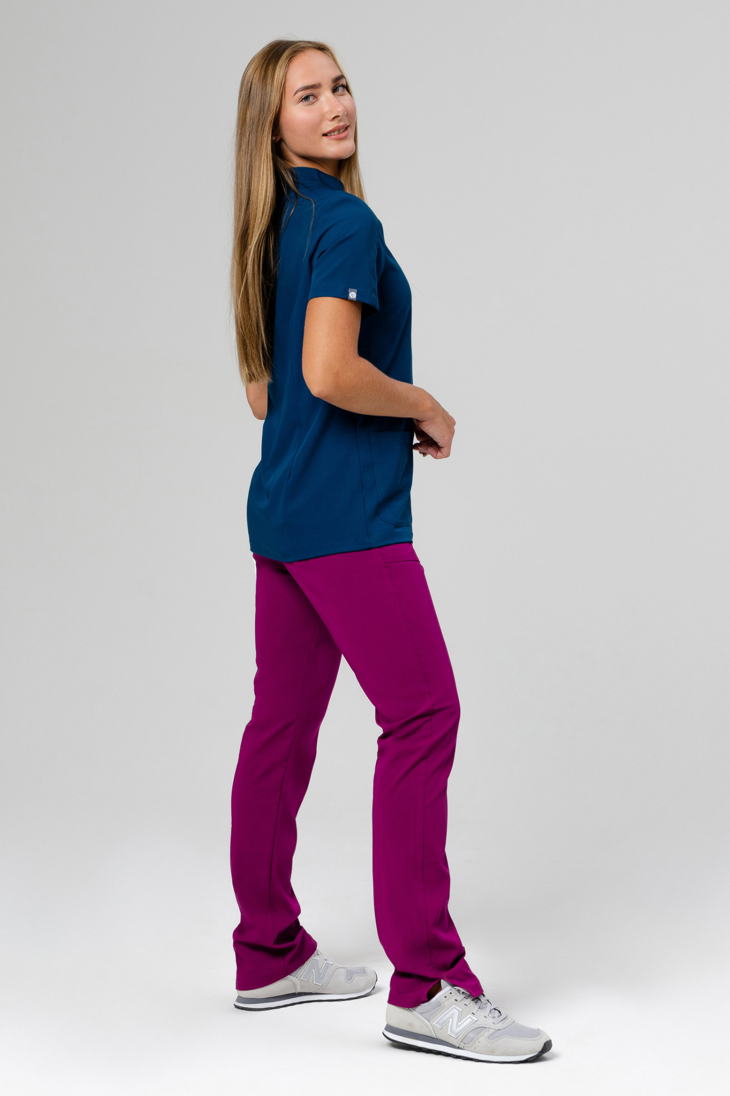 SILVA (52% полиэстер, 45% вискоза, 3% спандекс 170 г/м2) - идеальное сочетание легкости, эластичности и комфорта в одной ткани. Специально разработанная для нашей компании, она идеально подходит для медицинской одежды благодаря своей эргономичности и способности следовать каждому движению. Не просвечивает, не мнется, сохраняет яркость цвета, быстро сохнет и не требует глажки. Рекомендуем стирать изделие наизнанку при температуре не выше 30°C, с вещами аналогичного цвета. Не отбеливать. Гладить с изнаночной стороны при температуре не выше 110°C. Разрешена низкотемпературная машинная сушка. Не подвергать химической чистке.
