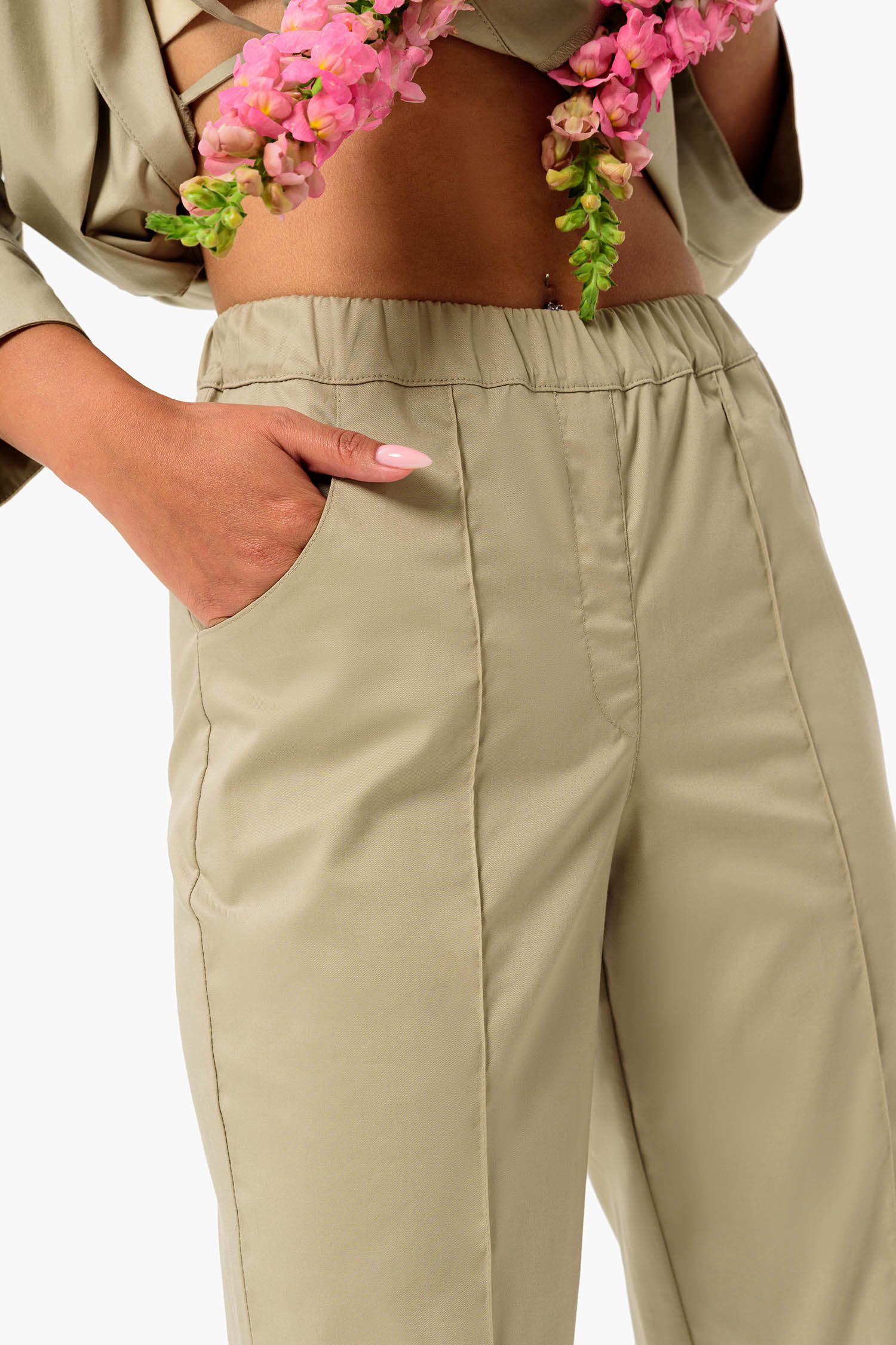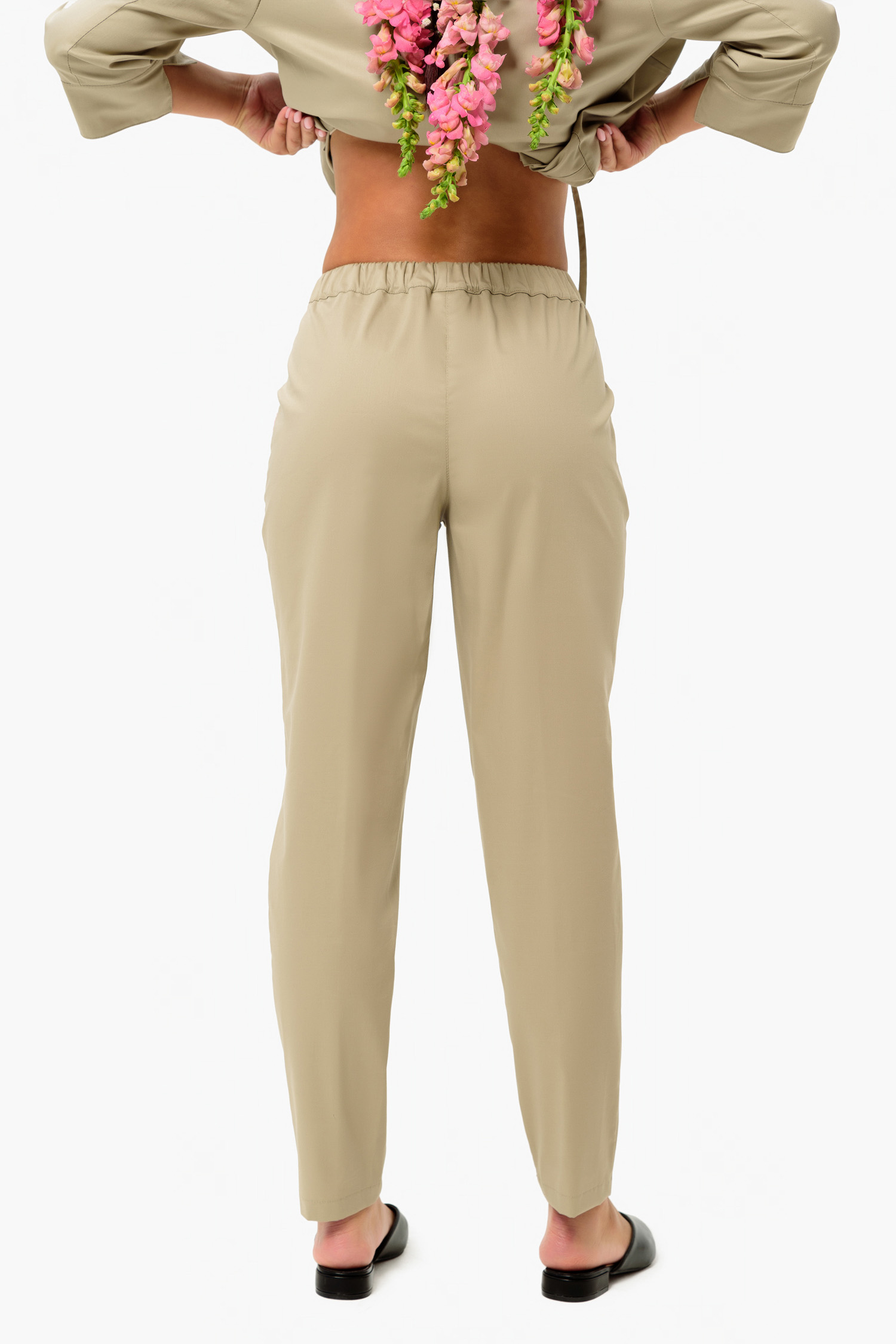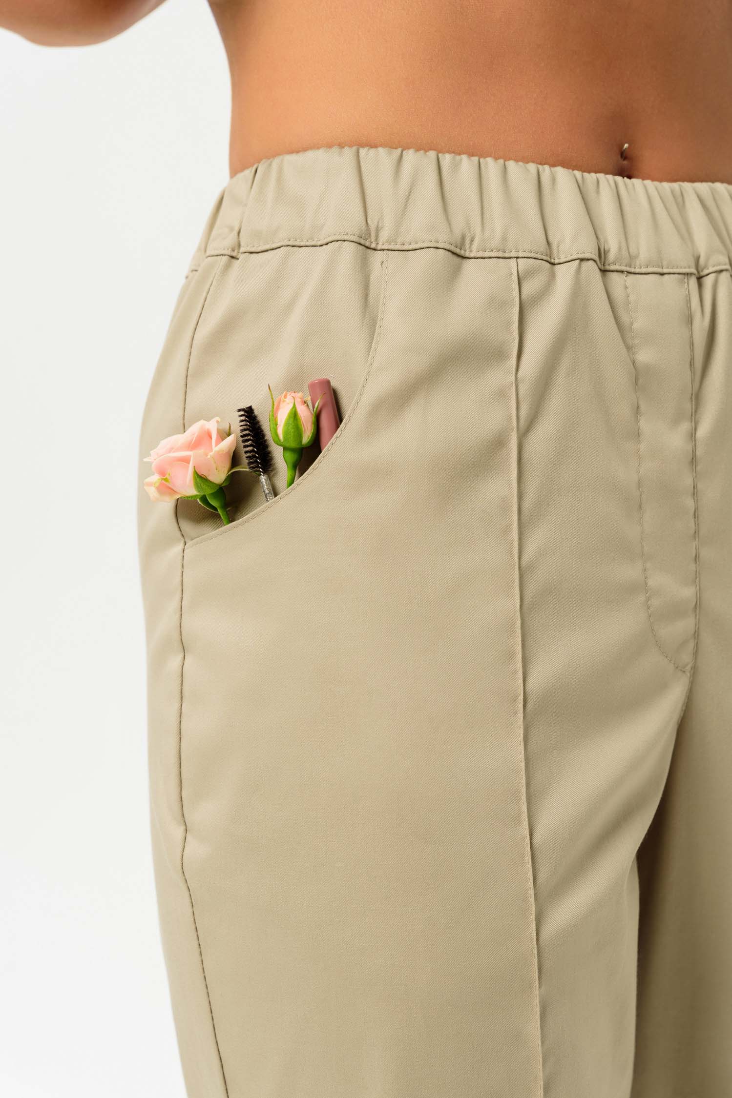 Мягкая резинка в поясе обеспечит комфорт без сдавливания и натирания на протяжении всего дня. А аккуратно исполненные «французские» карманы не топорщатся на любой фигуре и при этом позволяют хранить необходимые мелочи.