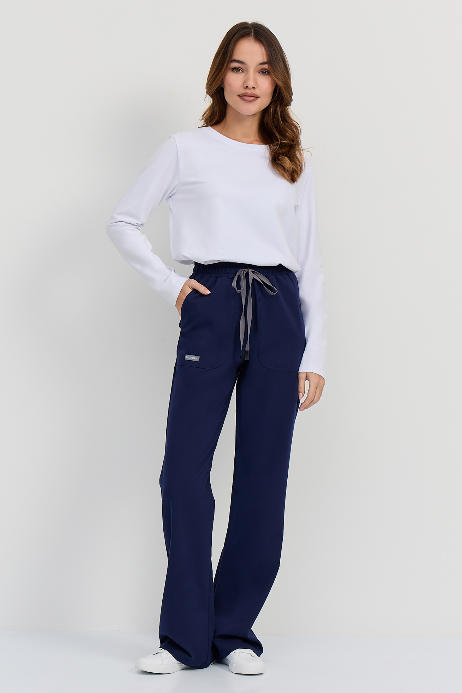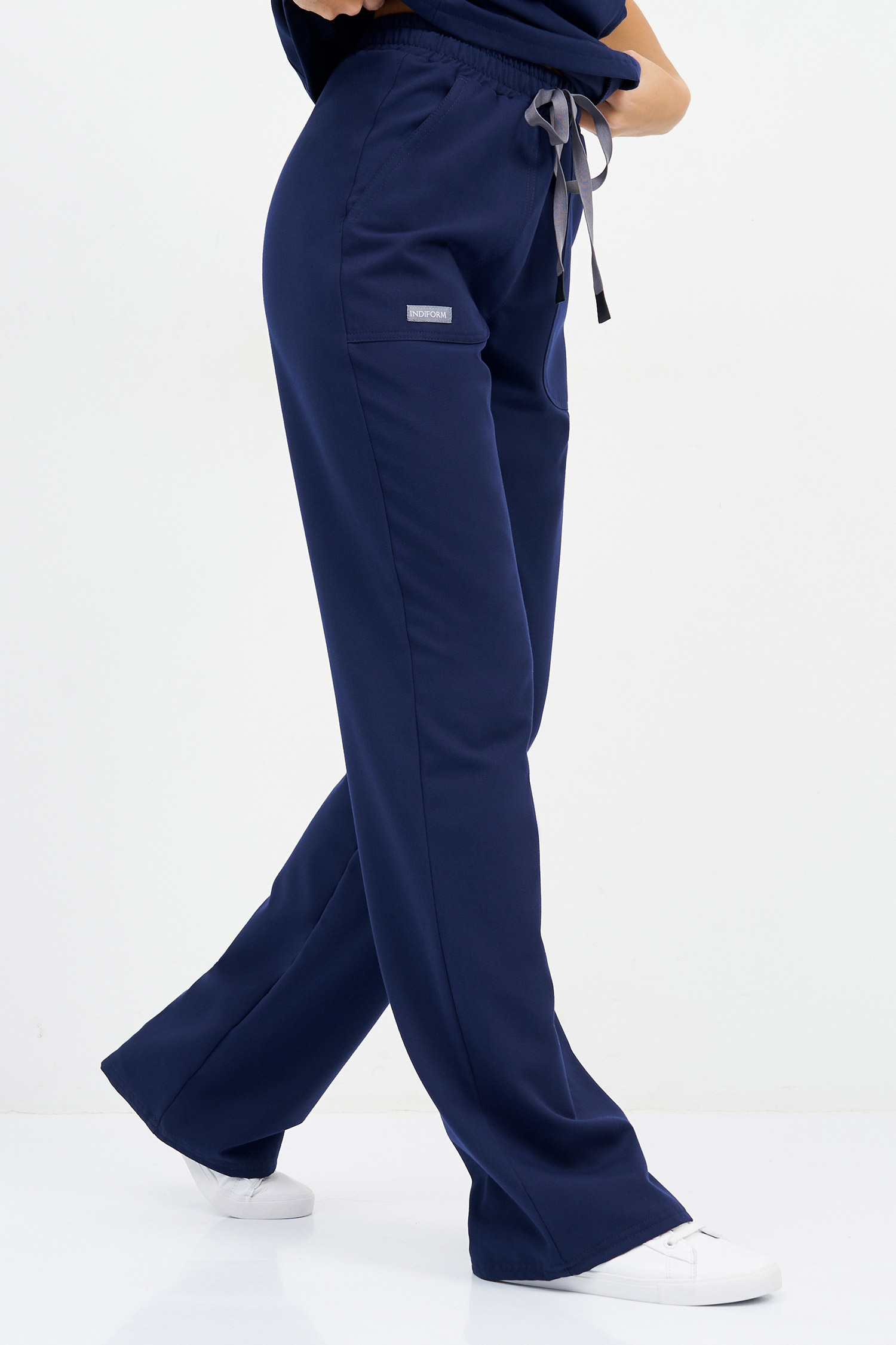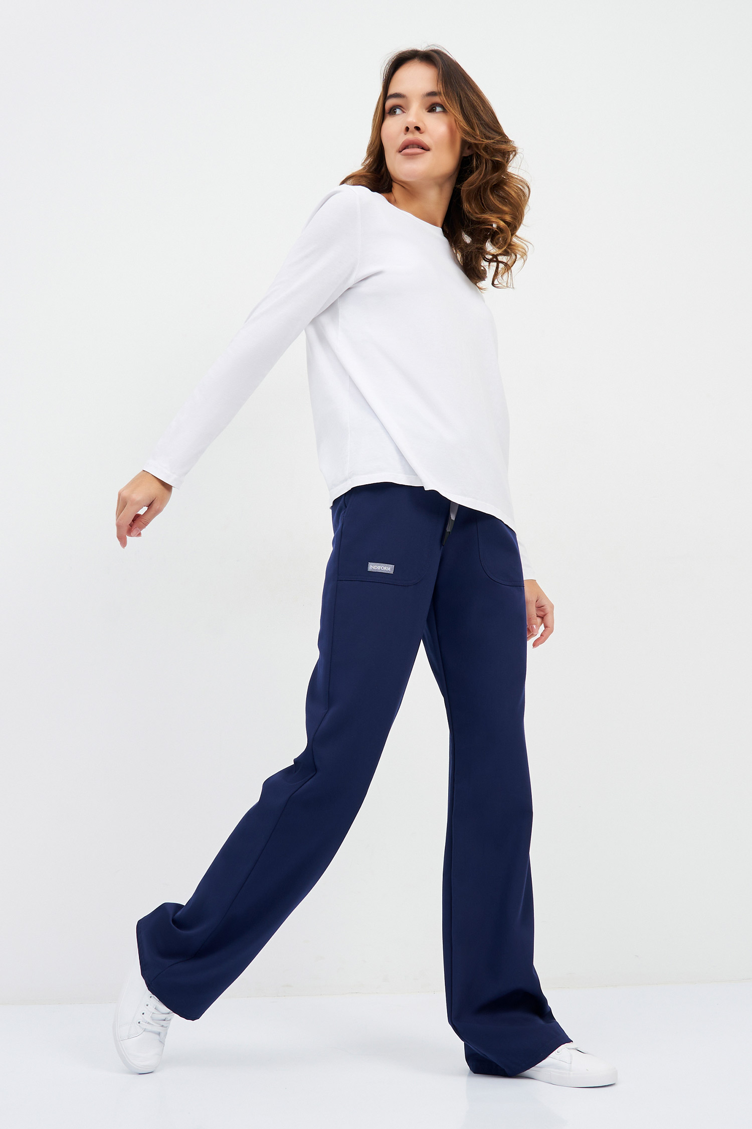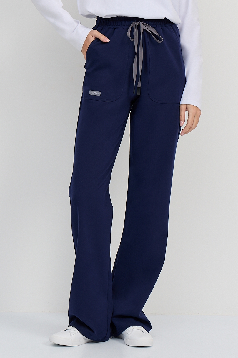 Стильные брюки от премиального бренда Indiform: комфортно прилегают по бёдрам и визуально расширяются к низу. Такой прямой крой брючин дарит свободу движениям и придает ноту трендовости профессиональному гардеробу. Пояс брюк на комфортной резинке с дополнительной фиксацией с помощью шнура. Спереди - два глубоких накладных кармана, один из которых скрывает ещё один небольшой карман, находящийся с изнаночной стороны брюк.