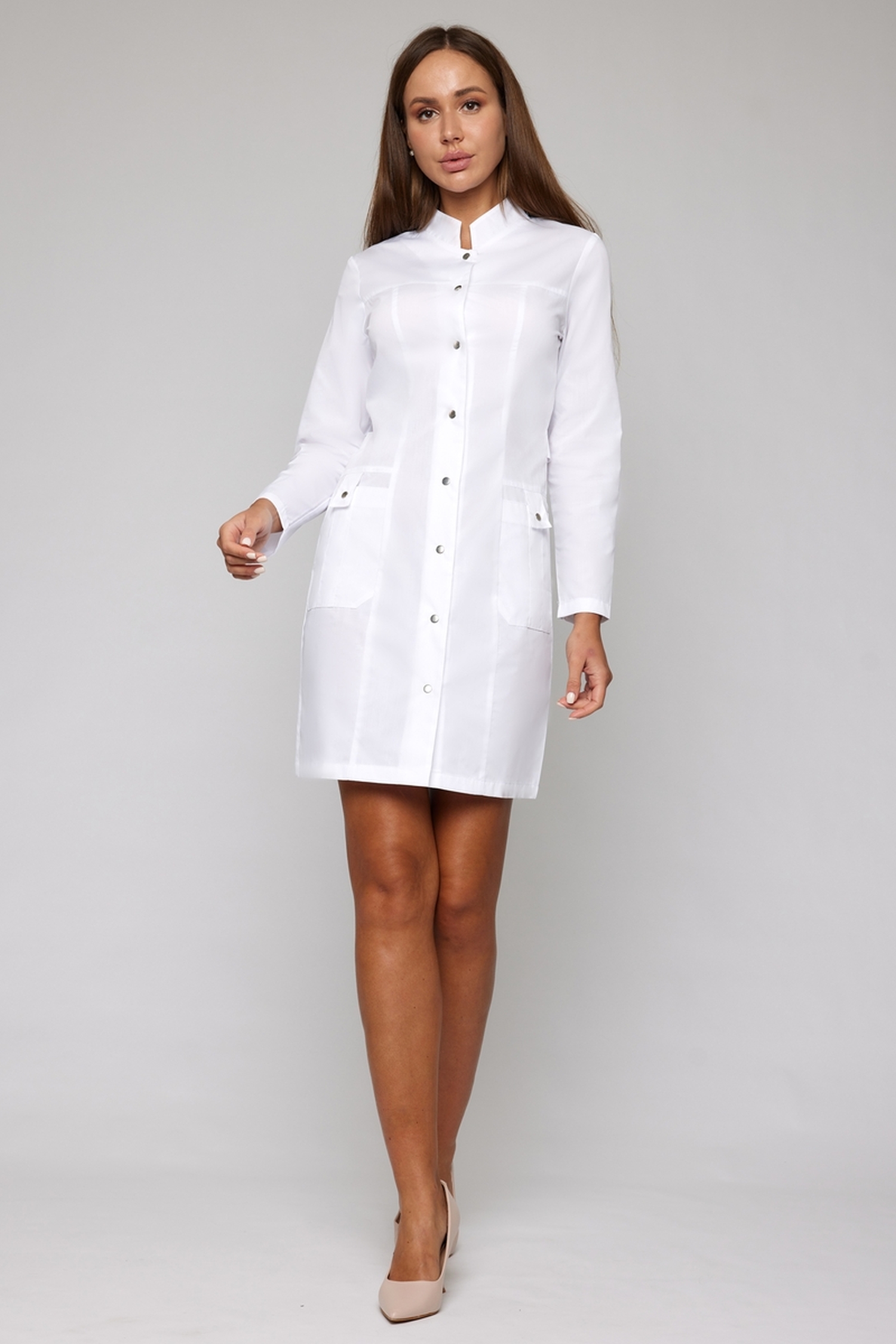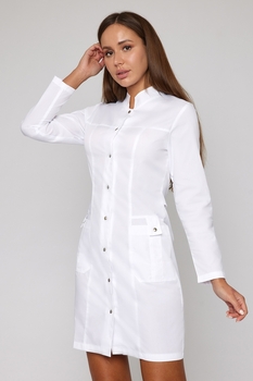 Стильный красивый медицинский халат от Doctor Big сохраняет опрятный вид на протяжении всей рабочей смены за счёт новой для бренда ткани Ultra.