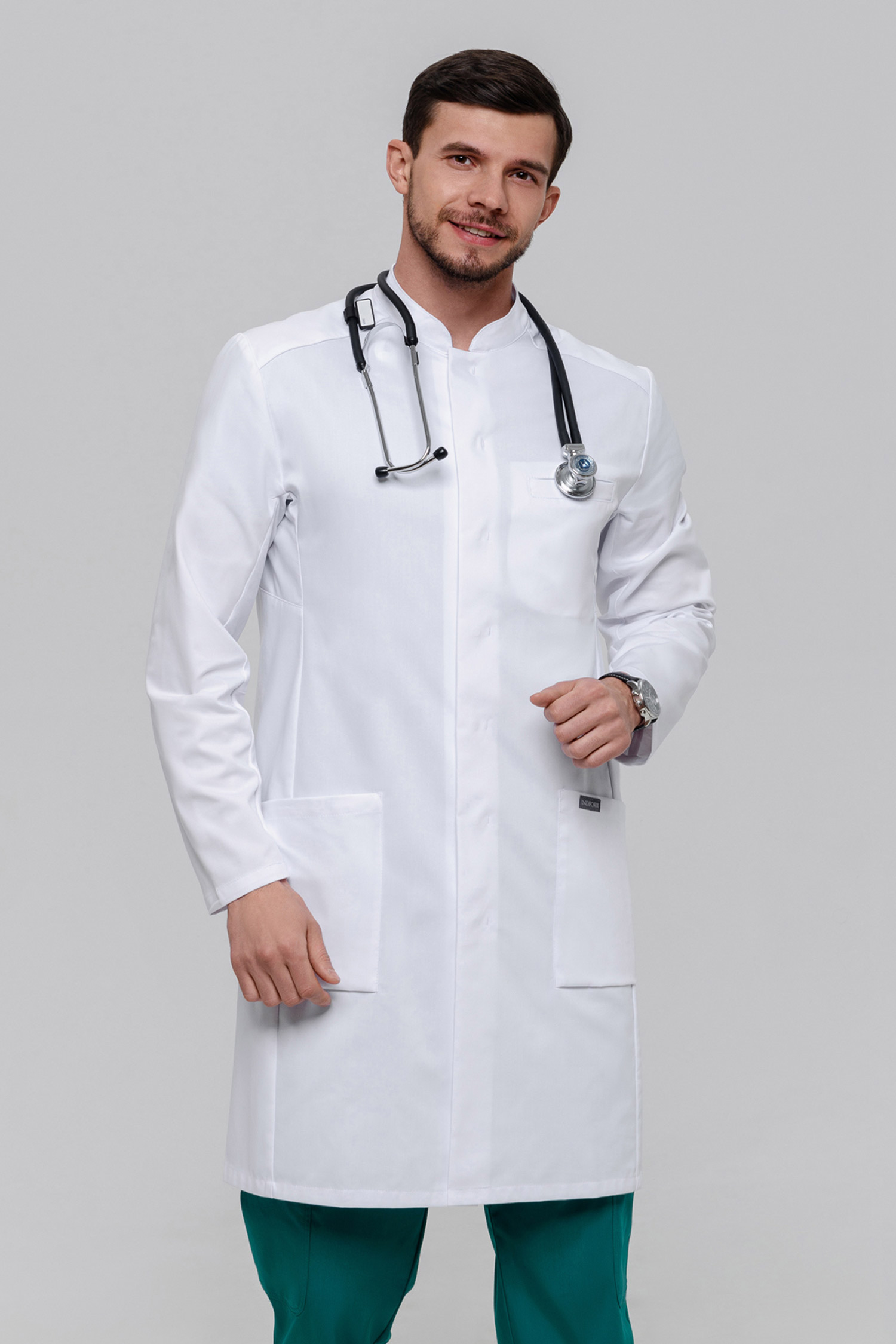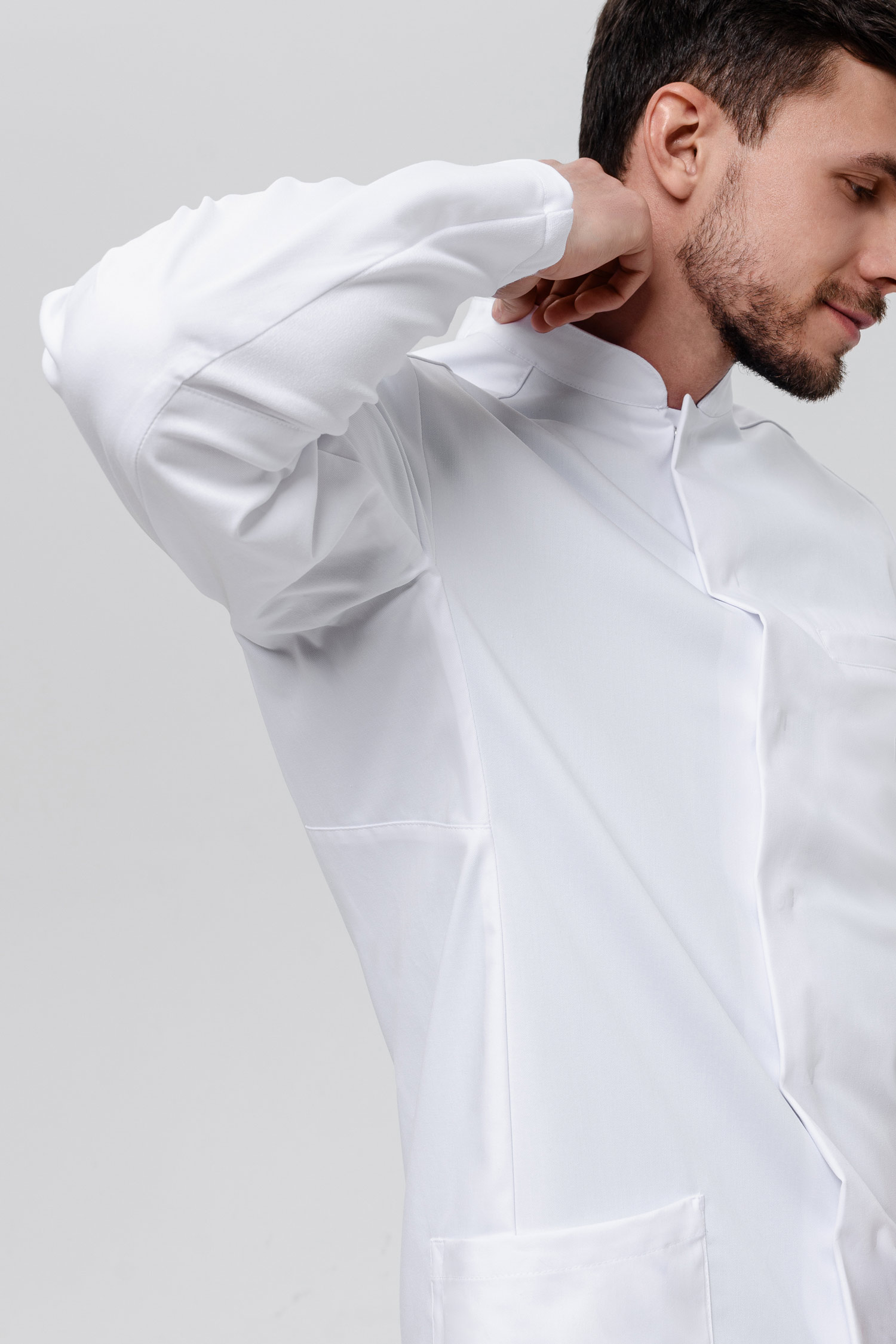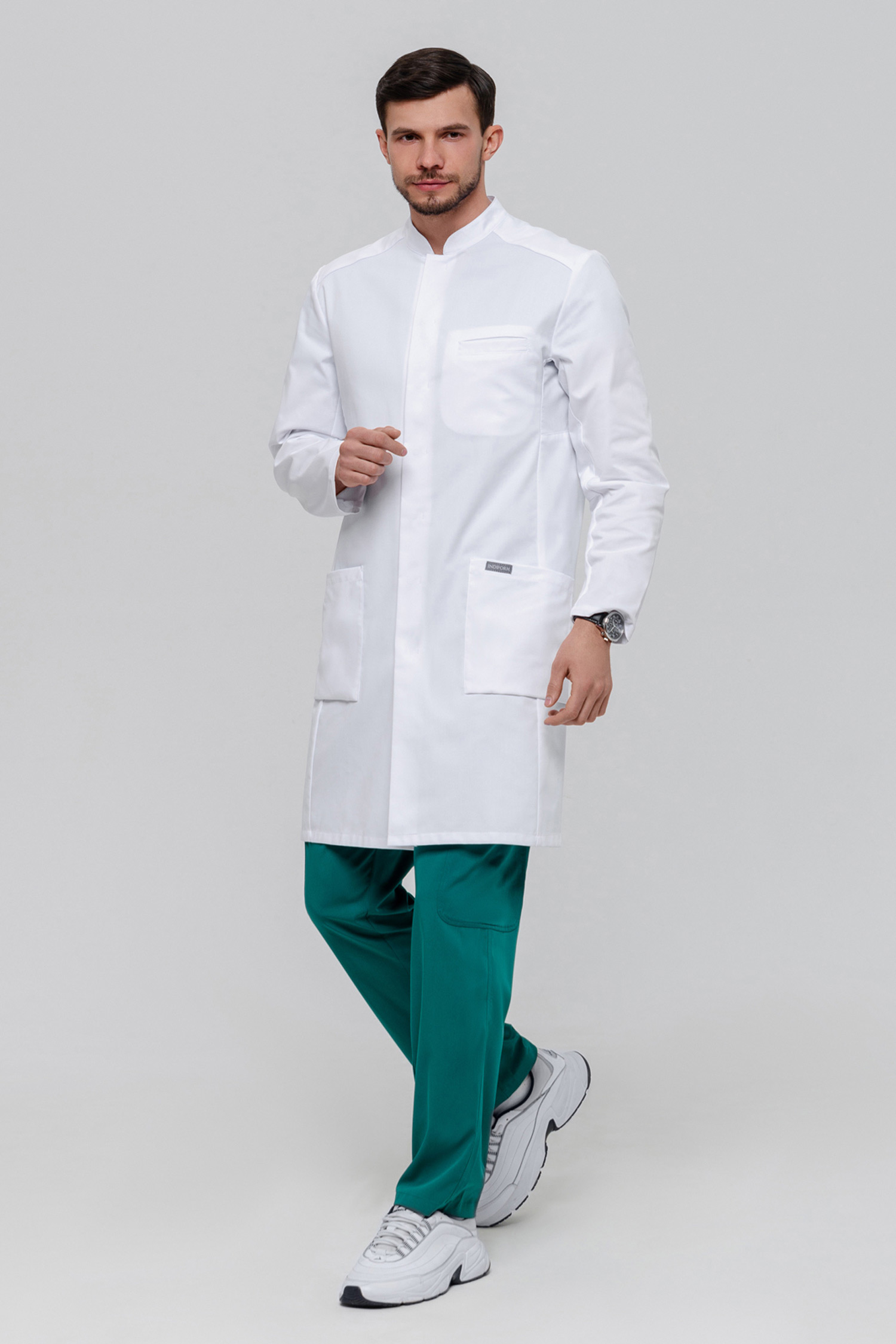 Премиальный бренд одежды Indiform представляет вашему вниманию мужской халат полуприлегающего силуэта, который на 100% обеспечит комфорт на протяжении всего рабочего дня. Благодаря конструкции рукава, силуэт халата остается неизменным при движении рук вверх, а трикотажная вставка внизу добавляет удобства в носке.
