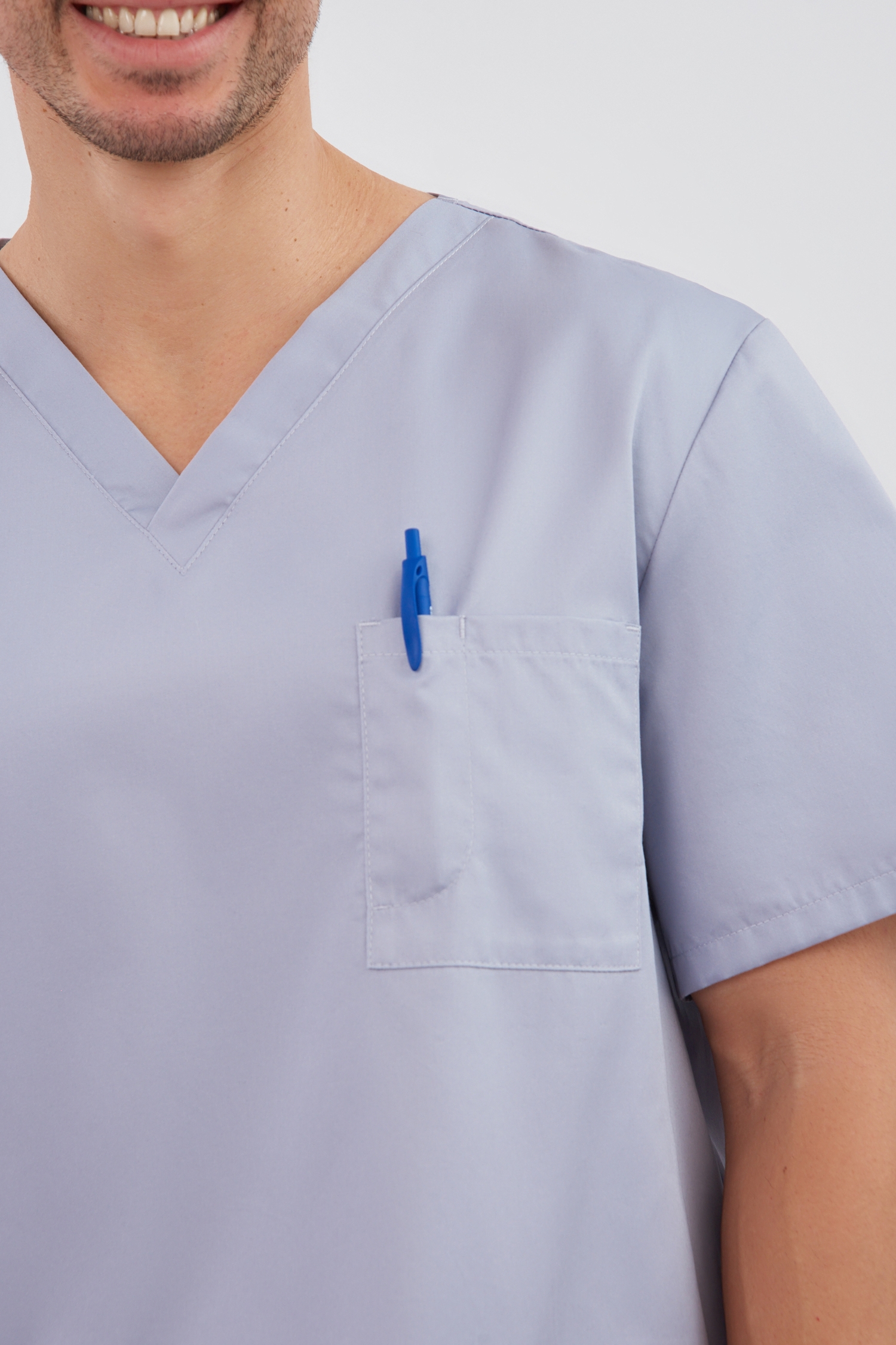 Мужской медицинский костюм прямого силуэта из ткани Cotton Premium сумел вместить все самое необходимое, что нужно каждому медицинскому работнику: от санитара до хирурга.