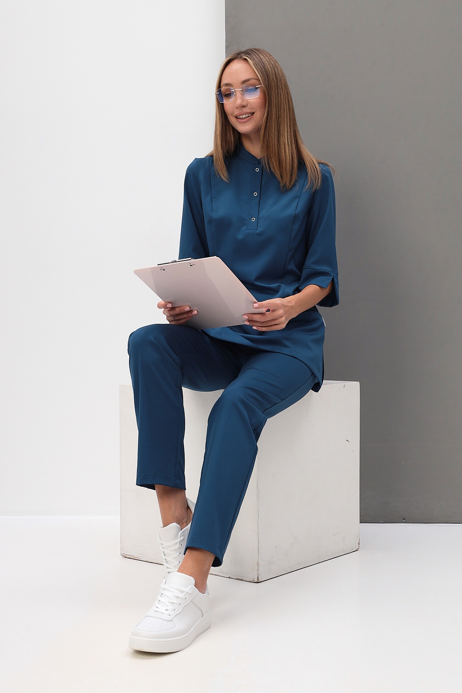 ELITE (79% полиэстер, 18% вискоза, 3% спандекс. 180 г/м2) - эластичная и гладкая на ощупь ткань. Благодаря своему составу, одежда из ELITE подвержена меньшей сминаемости, обладает хорошей устойчивостью к трению и не накапливает статическое электричество, из-за которого к одежде прилипают мелкие ворсинки и мусоринки.