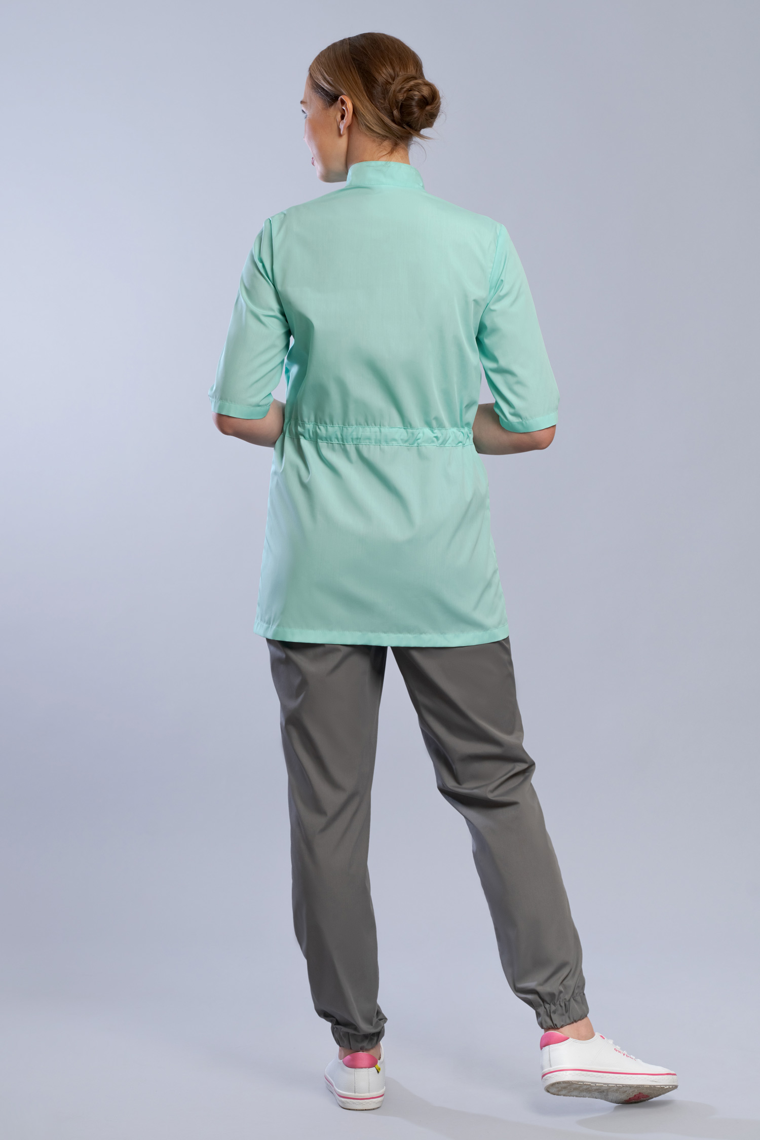 TC (35% хлопок, 65% полиэстер 120 г/м2) - это практичная и долговечная ткань, которая часто используется для медицинской одежды. Полиэстер делает ткань прочной и стойкой к износу, а хлопок придает ей мягкость и комфорт в носке. Такая ткань легко дышит и хорошо впитывает влагу, что делает ее подходящей для производства легкой медицинской одежды, такой как халаты, сорочки и брюки. Смесовой состав дает ткани необходимую прочность, но также сохраняет ее мягкость и удобство. Плотность ткани 120 г/м2 указывает на ее легкость, что делает ее подходящей для ношения в теплой климатической зоне или в помещении с хорошей вентиляцией. Сложностей в уходе за вещами из ТС нет, но все же выполнение наших рекомендаций поможет сохранить изделия в опрятном виде. Стирать при температуре 40°C. Подходит машинная и ручная стирка средствами для цветных тканей. Не используйте гель или порошок содержащий хлор. Отжимать можно в машинке при любых оборотах. Ткань достаточно прочная и устойчивая к механическим воздействиям. Сушить естественным способом не используя отопительных приборов. Гладить по изнаночной стороне включив на утюге режим синтетика, а для большей безопасности используйте увлажненный марлевый проутюжильник.