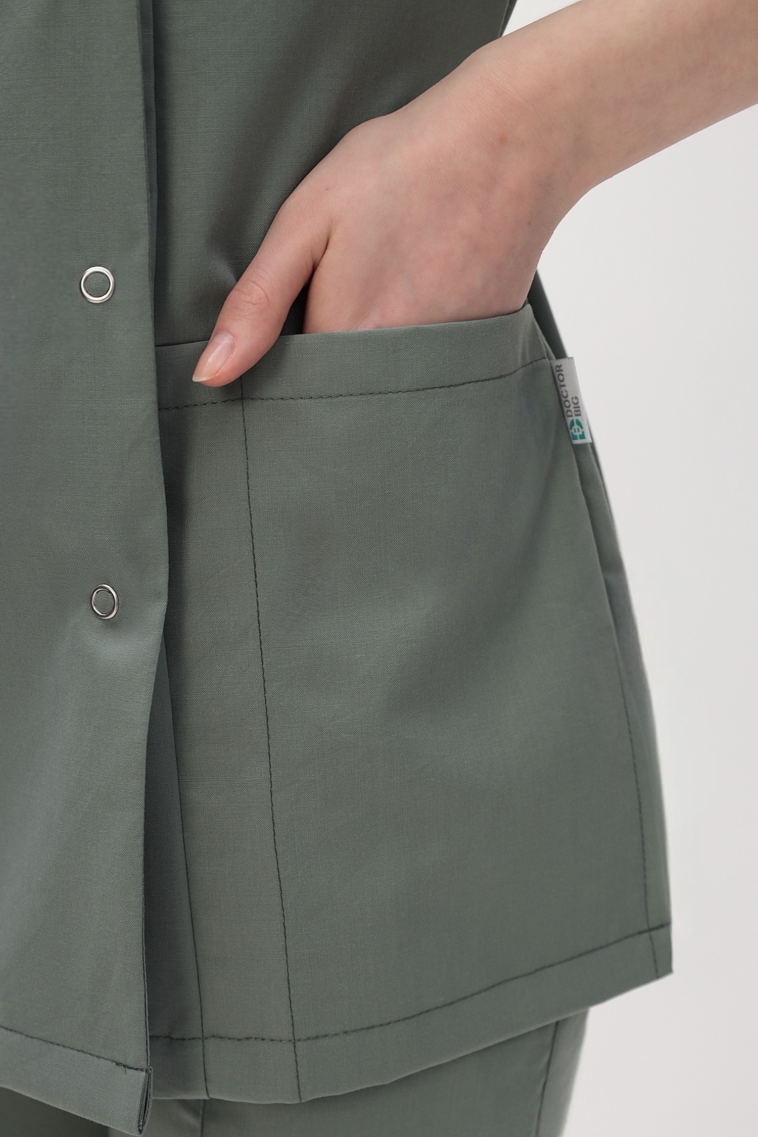Костюм выполнен из лёгкой и мягкой ткани AURA, которая содержит в составе вискозу (35%) и полиэстер (65%). Одежда из ткани AURA приятна на ощупь и долговечна в использовании.