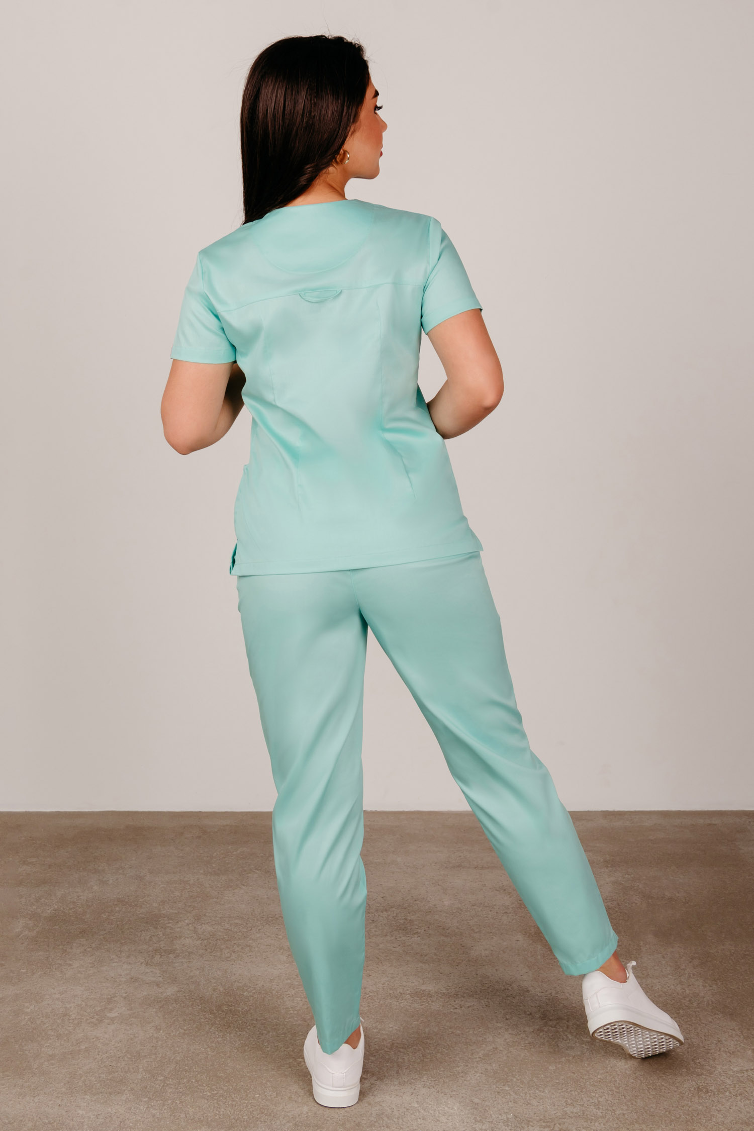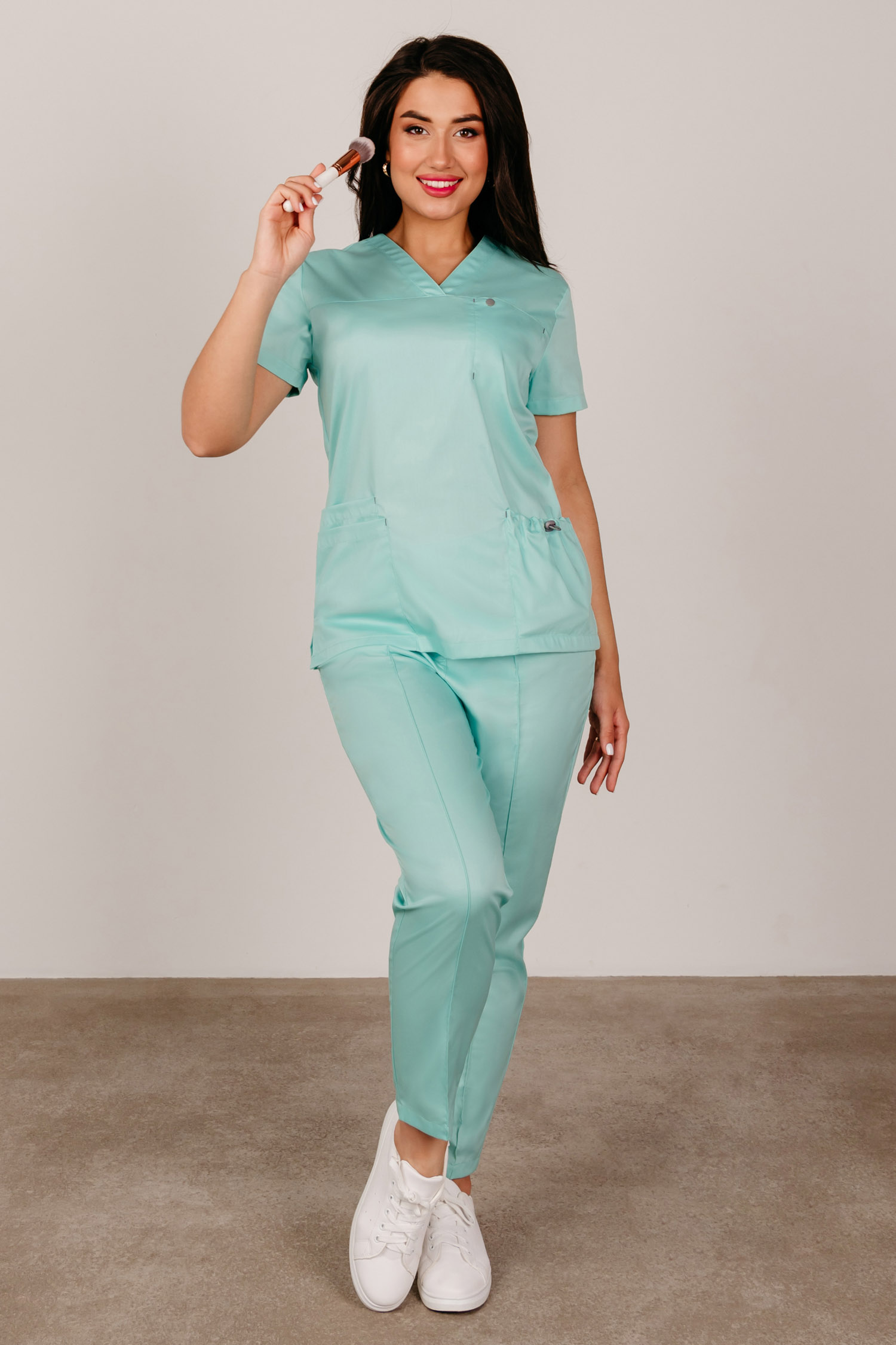 Женственный и комфортный медицинский блузон, представленный в нескольких оттенках, покорит Вас своими модным дизайном и практичностью в носке. В этой модели прекрасно всё! V-образный вырез делает акцент на шее, визуально удлиняя ее и подчеркивая изящество линий. Идеальная посадка по фигуре благодаря рельефам подчеркнут линии тела, сохраняя женственность. Вертикальные боковые разрезы по линии бедер дарят Вашим движениям свободу. Один нагрудный карман, который застегивается на кнопку, три нижних кармана, один из которых объемный, регулируется шнурком - всё для вашего удобства!