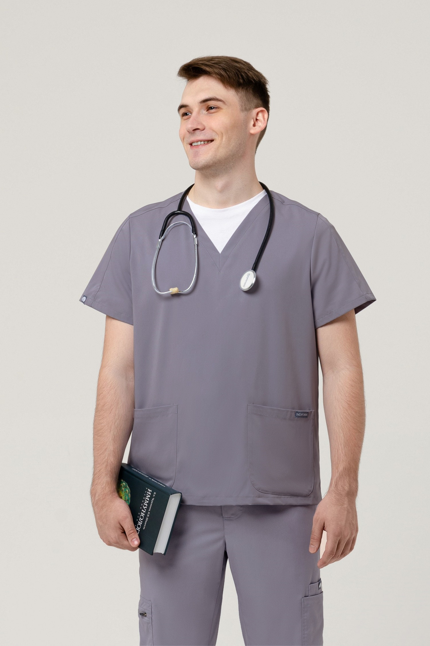 Топ James – яркая единица всей коллекции бренда Indiform. Прямой силуэт, два передних кармана, уникальная цветовая палитра— именно так можно описать эту модель. Сочетается с халатом, лонгсливом или футболкой, и подходит для самостоятельного образа. Топ для смелых и активных медицинских работников, массажистов и даже тату-мастеров!