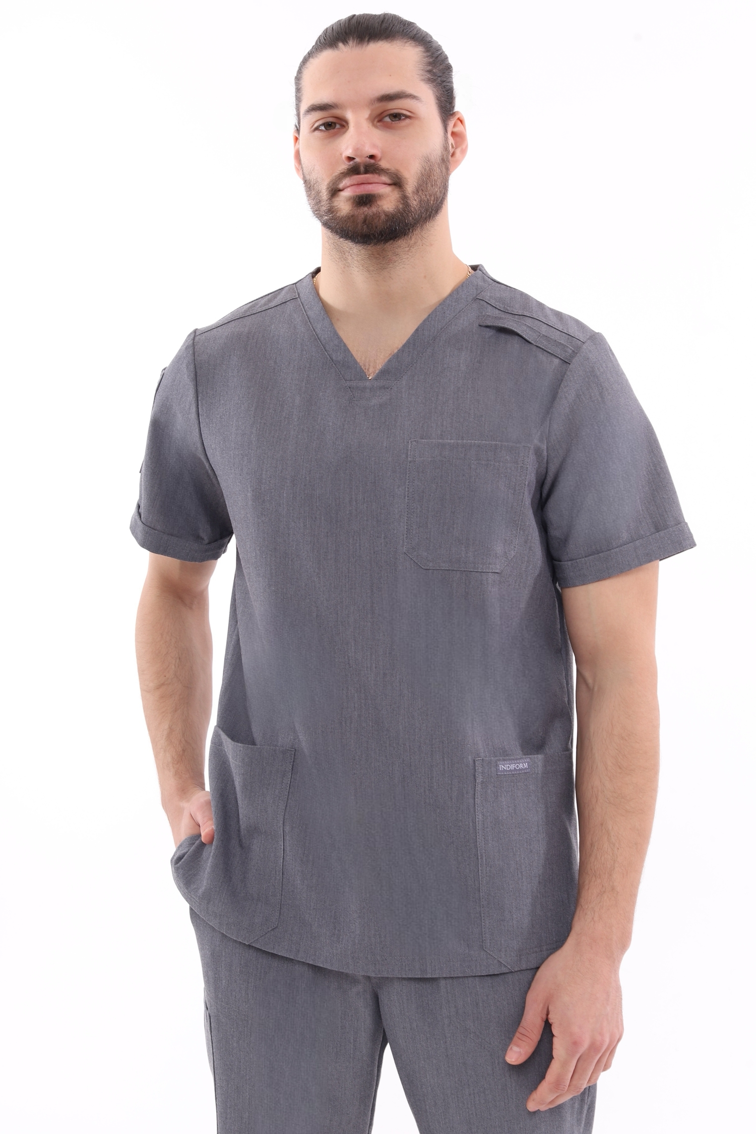 Мужской медицинский топ прямого силуэта с длиной чуть ниже бедер и фигурной линией горловины с боковыми карманами – универсальный вариант для работников медицинских специальностей. Одежда бренда Indiform – это профессиональная униформа нового поколения для смелых и активных врачей, которые не бояться выделяться! Выбирай Indiform, будь эффективнее!