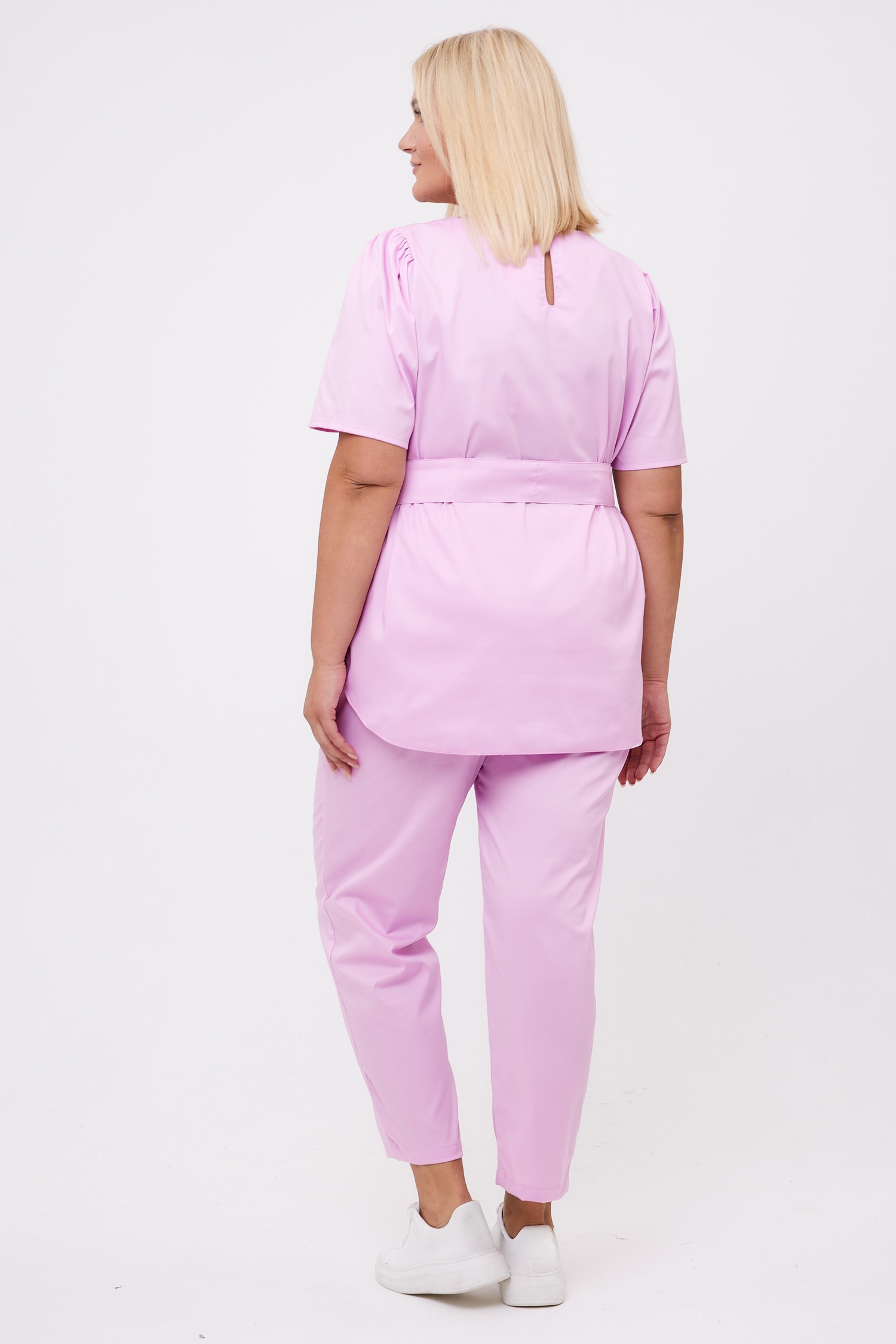 Красивая и элегантная медицинская блуза утонченного А-силуэта с широким поясом выгодно смотрится на любом типе фигуры. Округлая форма горловины прекрасно подойдет для любительниц классического стиля с оттенком нежности. Просто и красиво!
