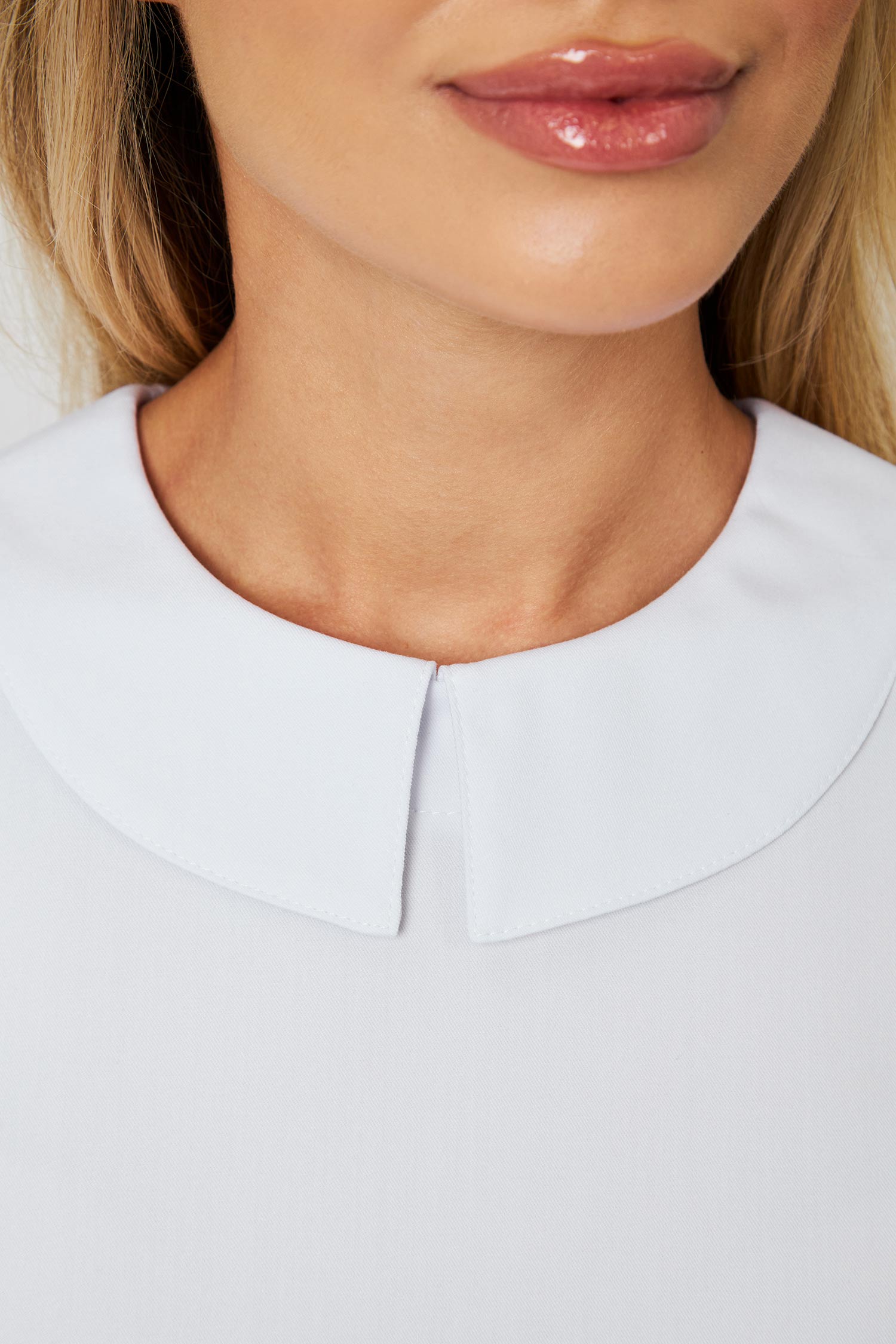 Воротник блузы имеет изящную округлую форму, как бы делая образ более лёгким.