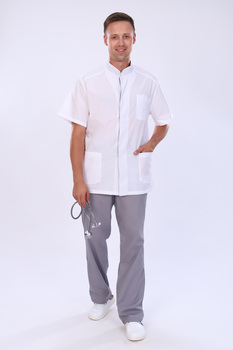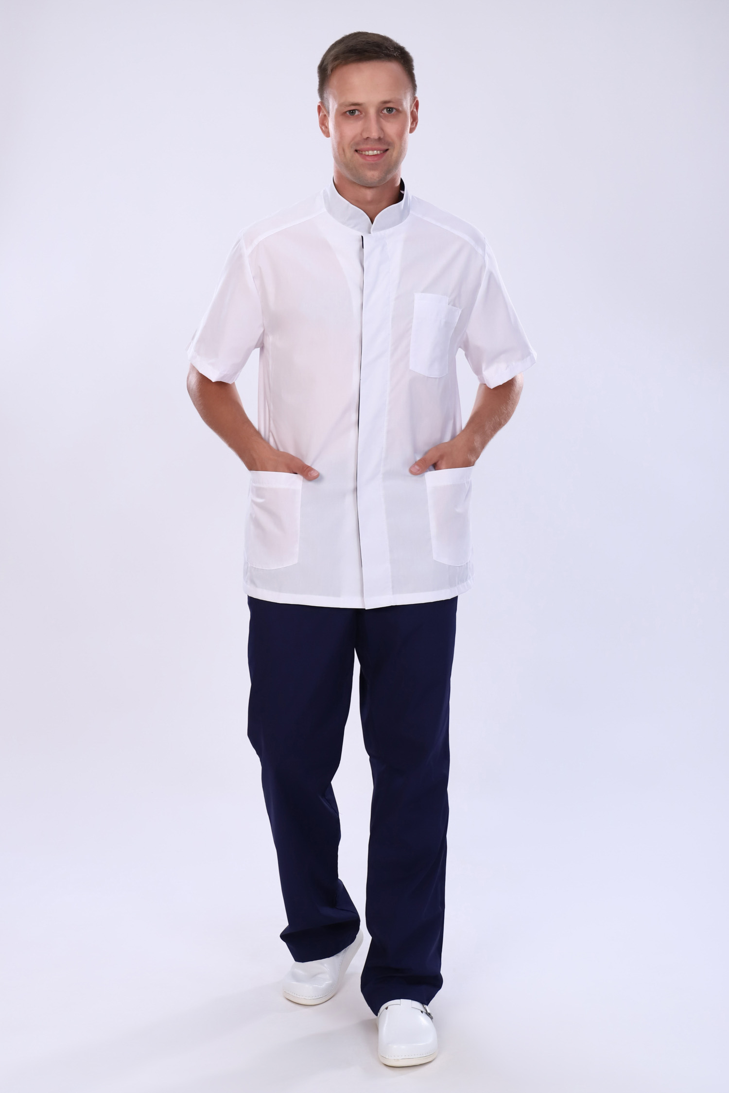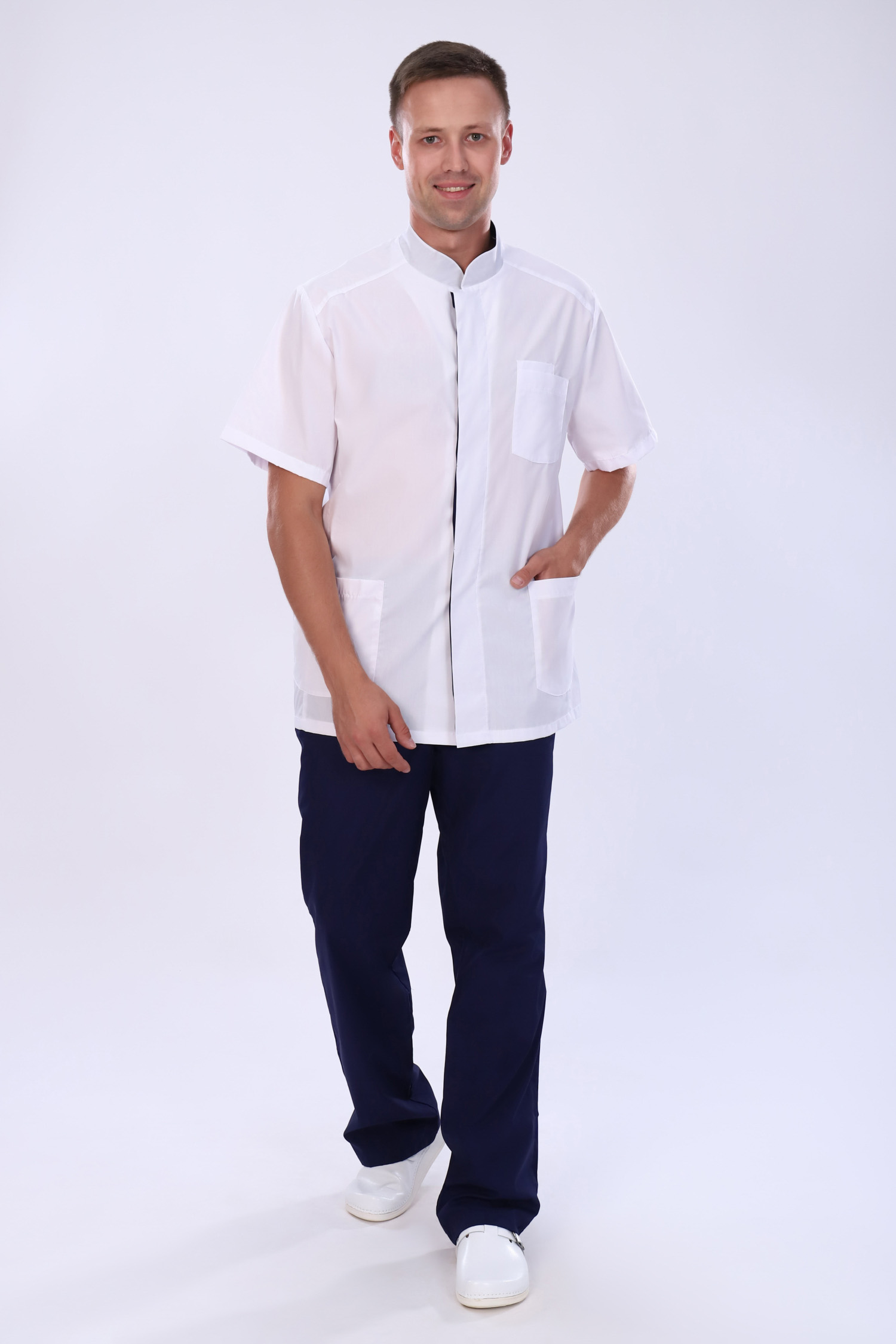 Наш магазин Медодежда.ру предлагает вашему вниманию интересный вариант медицинской спецодежды для мужского медицинского персонала. Рубашка прямого кроя, выполненная в строгом, изящном стиле, с короткими рукавами, придаёт элегантность вашему образу. Уникальный воротник-стойка в комбинации с неординарной центральной застёжкой и интересными накладными карманами великолепно подчеркнут ваш неповторимый стиль. Полупояса на спинке выполнены на кнопках и идеально стройнят любую фигуру. Брюки данного костюма исполнены прямым кроем и совершенно точно сядут на фигуру, благодаря широкому поясу-резинке. Данную нетривиальную модель вы можете выбрать в различных цветах. Выполняется до 60 размера.