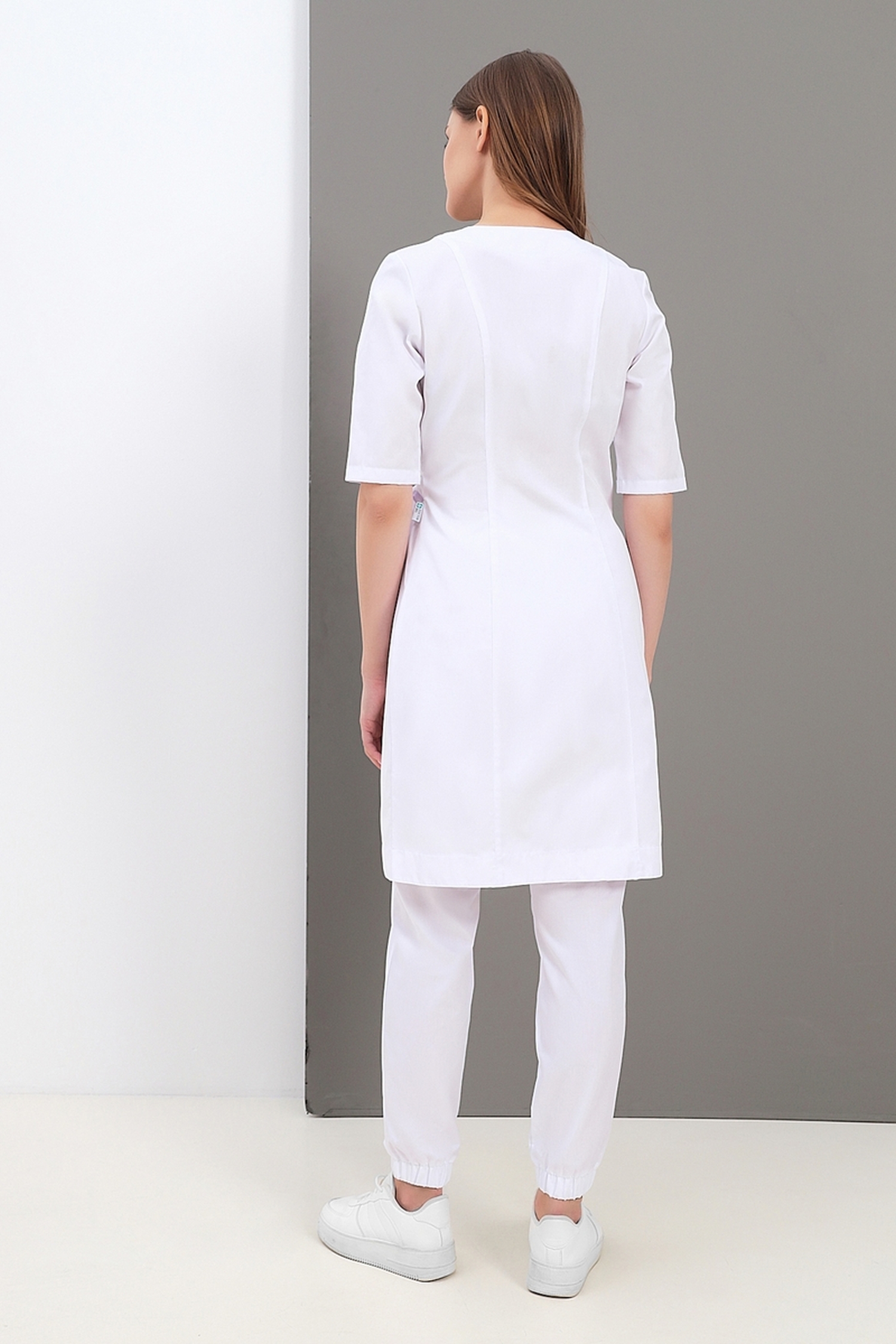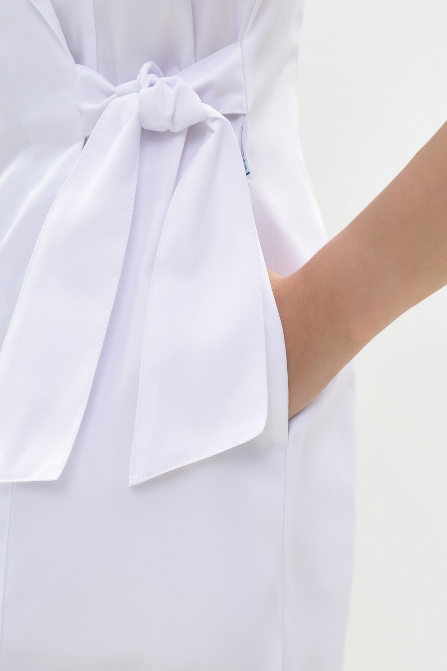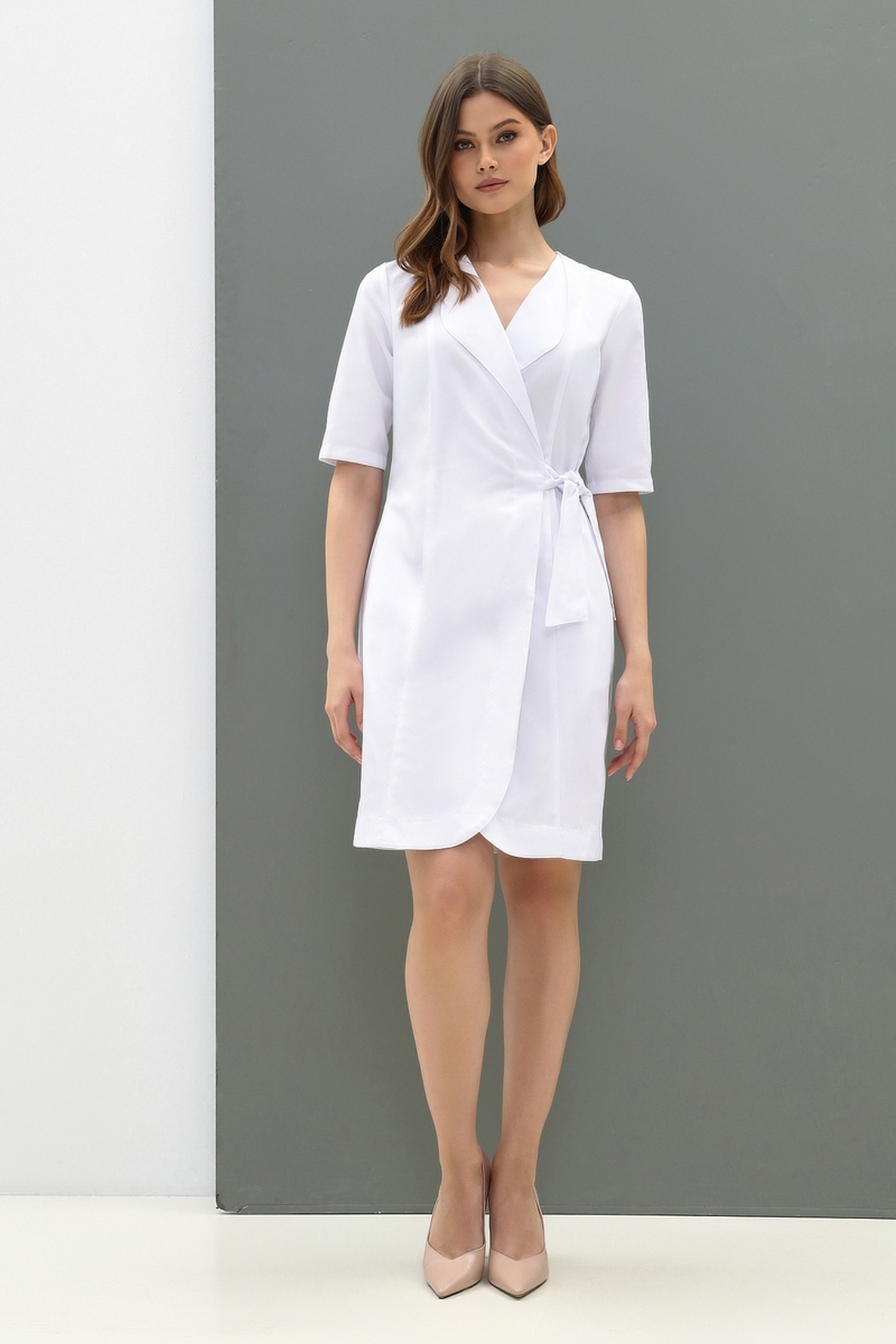 Даже в профессиональной форме можно подчеркнуть свою индивидуальность и выглядеть стильно! С этой задачей прекрасно справится наша новинка – элегантный запашной халат приталенного силуэта арт.285. Запах и шалевый воротник образуют красивую линию декольте, а оптимальная длина халата до линии колен и рукав длиной 1/2 обеспечивают комфорт в течение всего дня. Модель имеет два вместительных кармана, спрятанных в боковых швах. Левый лацкан, выполненный из отделочного материала, делает халат одновременно деловым и женственным, что как нельзя лучше отражает образ современного врача.