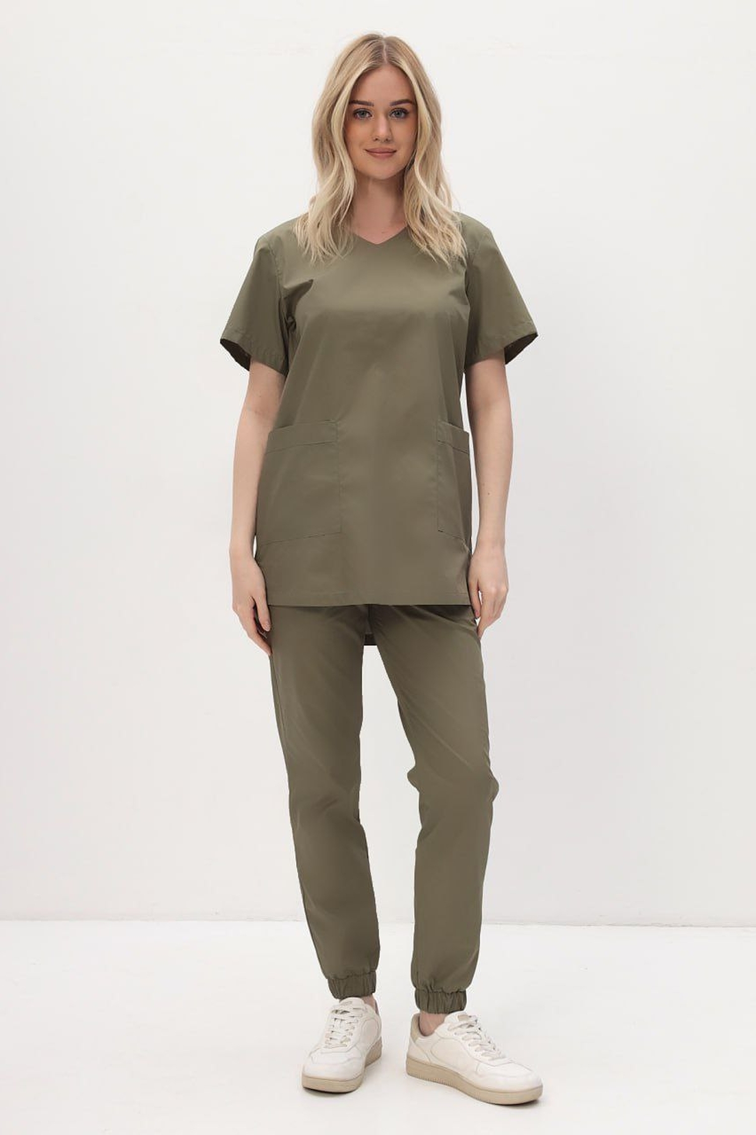 Добро пожаловать в мир спортивного свободного стиля с медицинским оверсайз-костюмом арт.4-87 от бренда Doctor Big! Костюм состоит из топа прямого силуэта и брюк-джоггеров модного в 2023 году кроя.