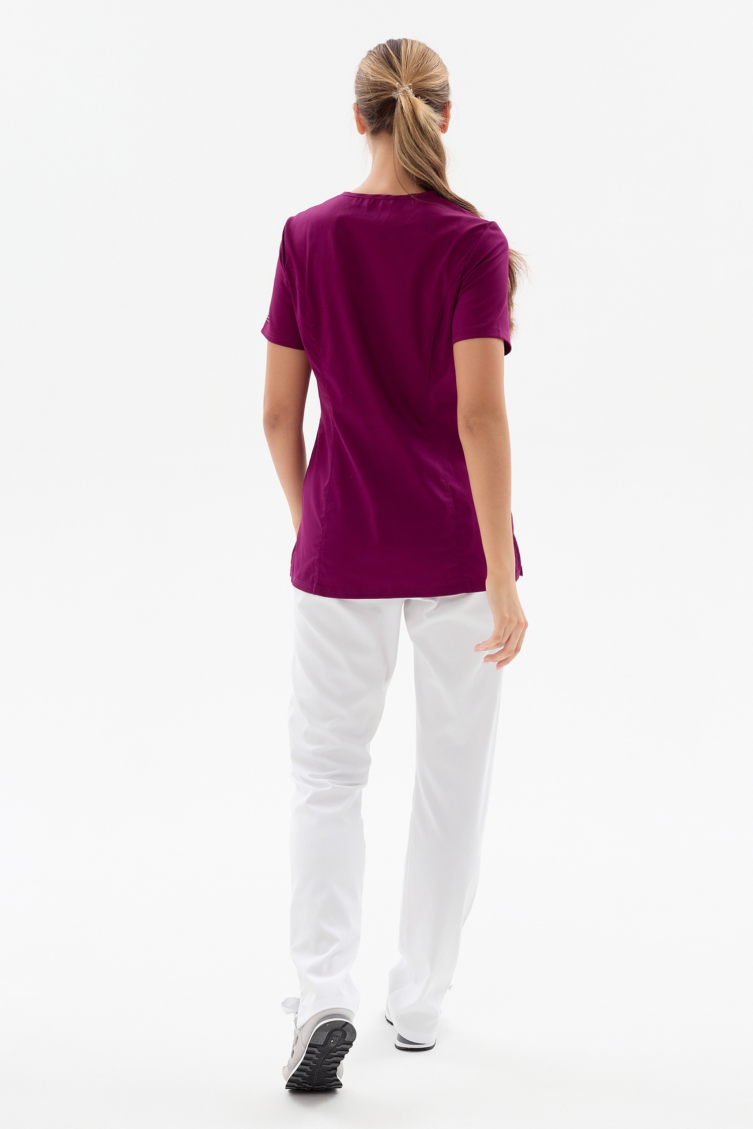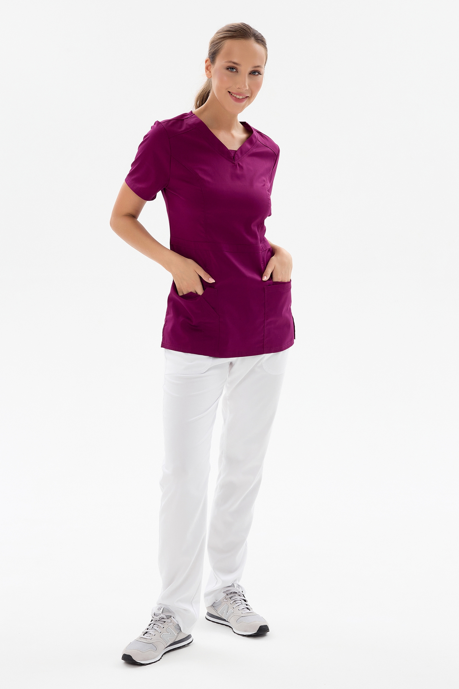 Медицинский топ арт.3-77 успешно сочетает в себе комфорт и стиль: женственный полуприлегающий силуэт, удобная длина до уровня линии бедер с разрезами по низу и фигурная форма горловины, дополненные самыми разными цветовыми решениями - всё это подчеркнет достоинства любой фигуры и при этом добавят удобства движениям.