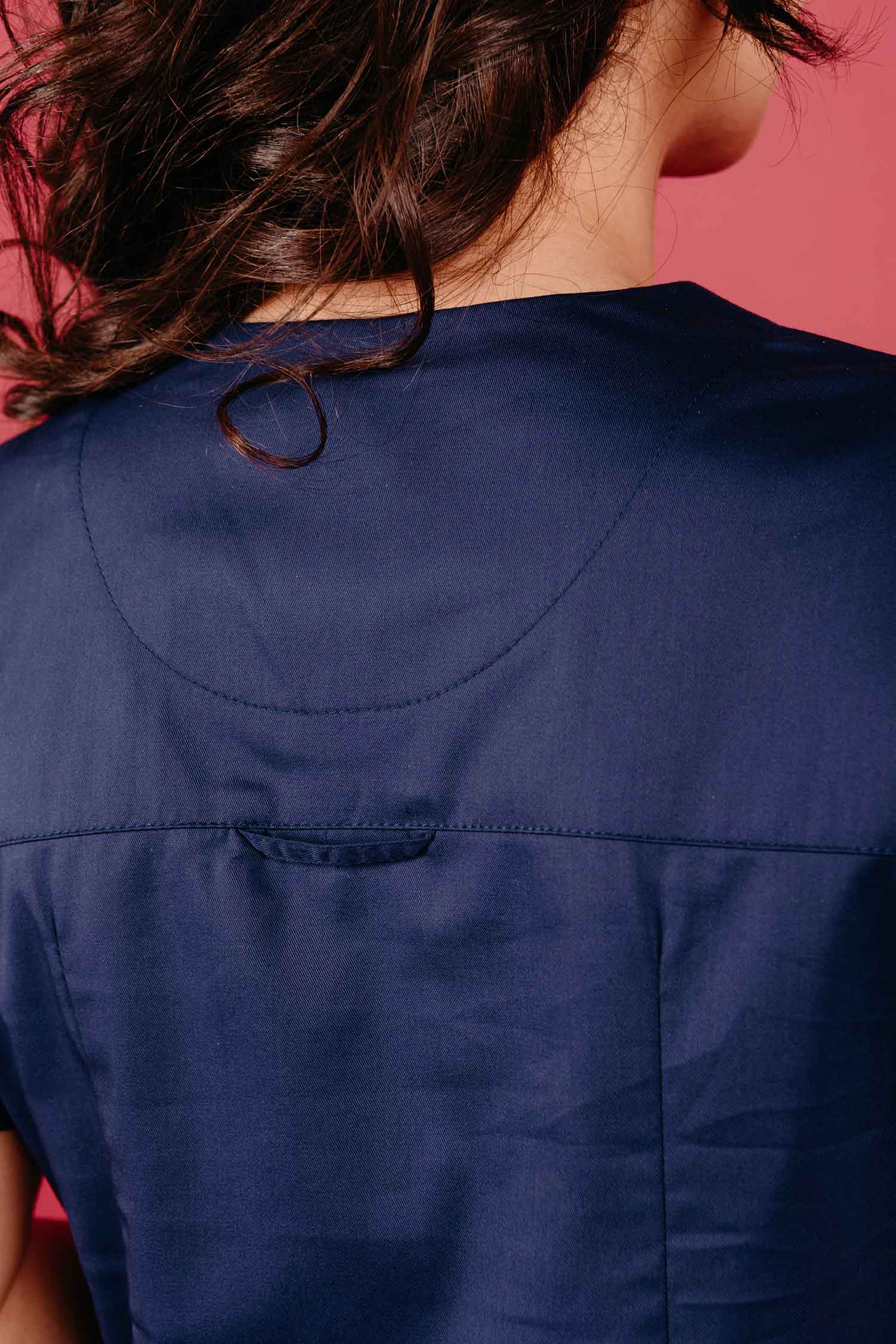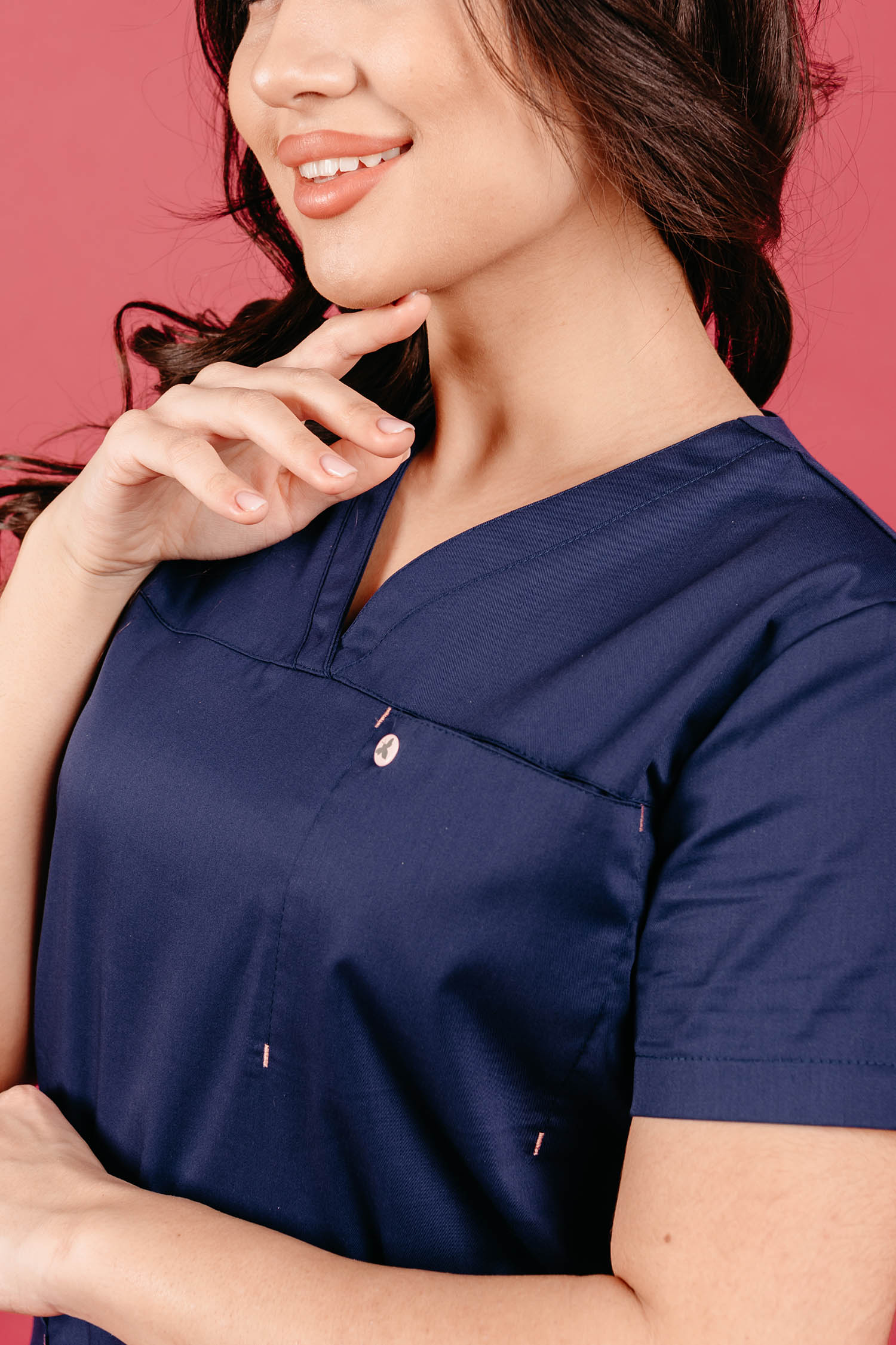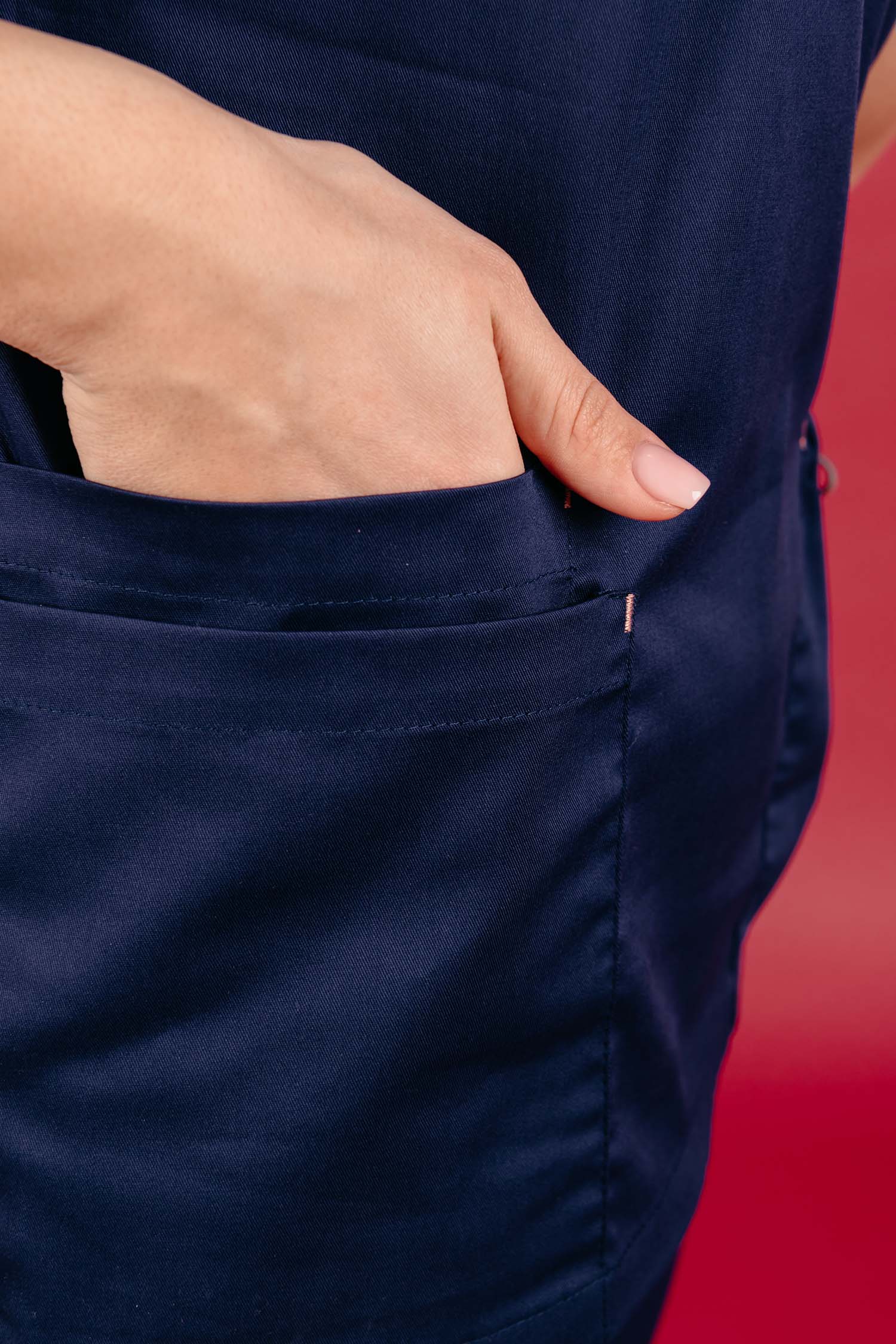 Все положительные качества рабочей униформы соединил в себе блузон от бренда Viviform. Высокое качество ткани, которое дарит комфорт, сохраняет приятный внешний вид, даже после многочисленных стирок. Крой, который добавляет удобство в носке, не сковывая движения. Блузон прилегающего силуэта с V-образным вырезом. Один нагрудный карман, который застегивается на кнопку, три нижних кармана, один из которых объемный, регулируется шнурком. Размерный ряд до 52 размера.
