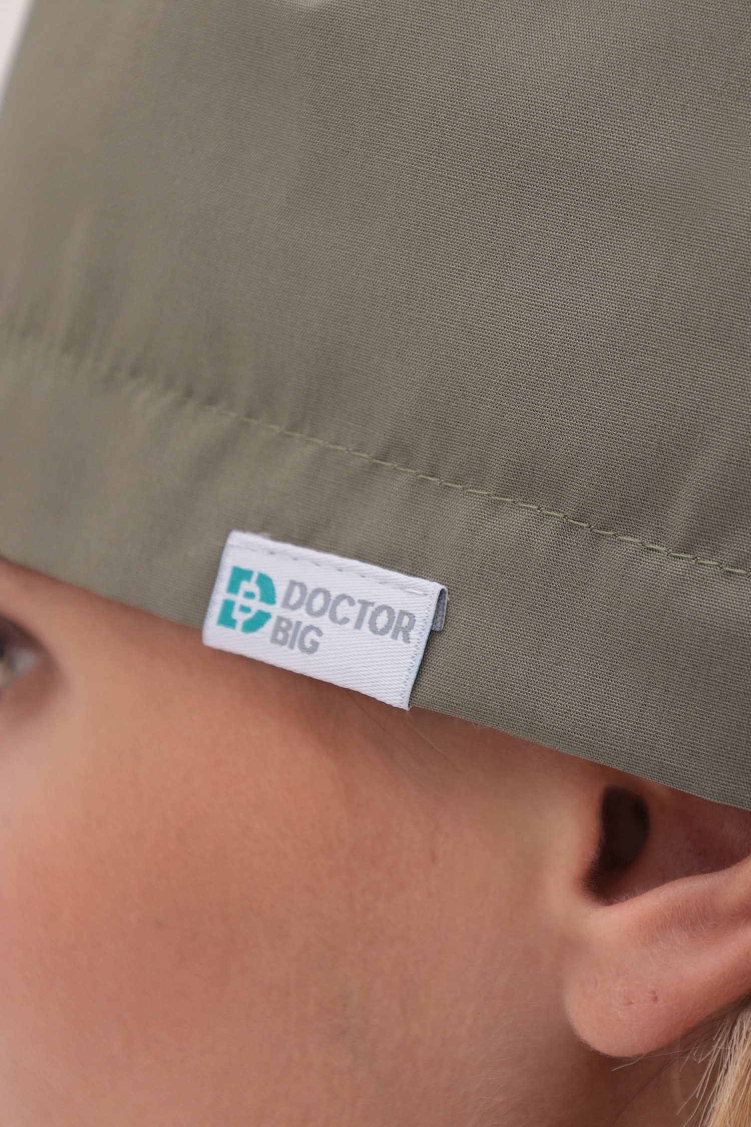 По низу бортика колпака, с правой стороны, расположена жаккардовая этикетка, которая является логотипом Doctor Big. Этикетка подтверждает высокое качество и соответствие стандартам бренда.