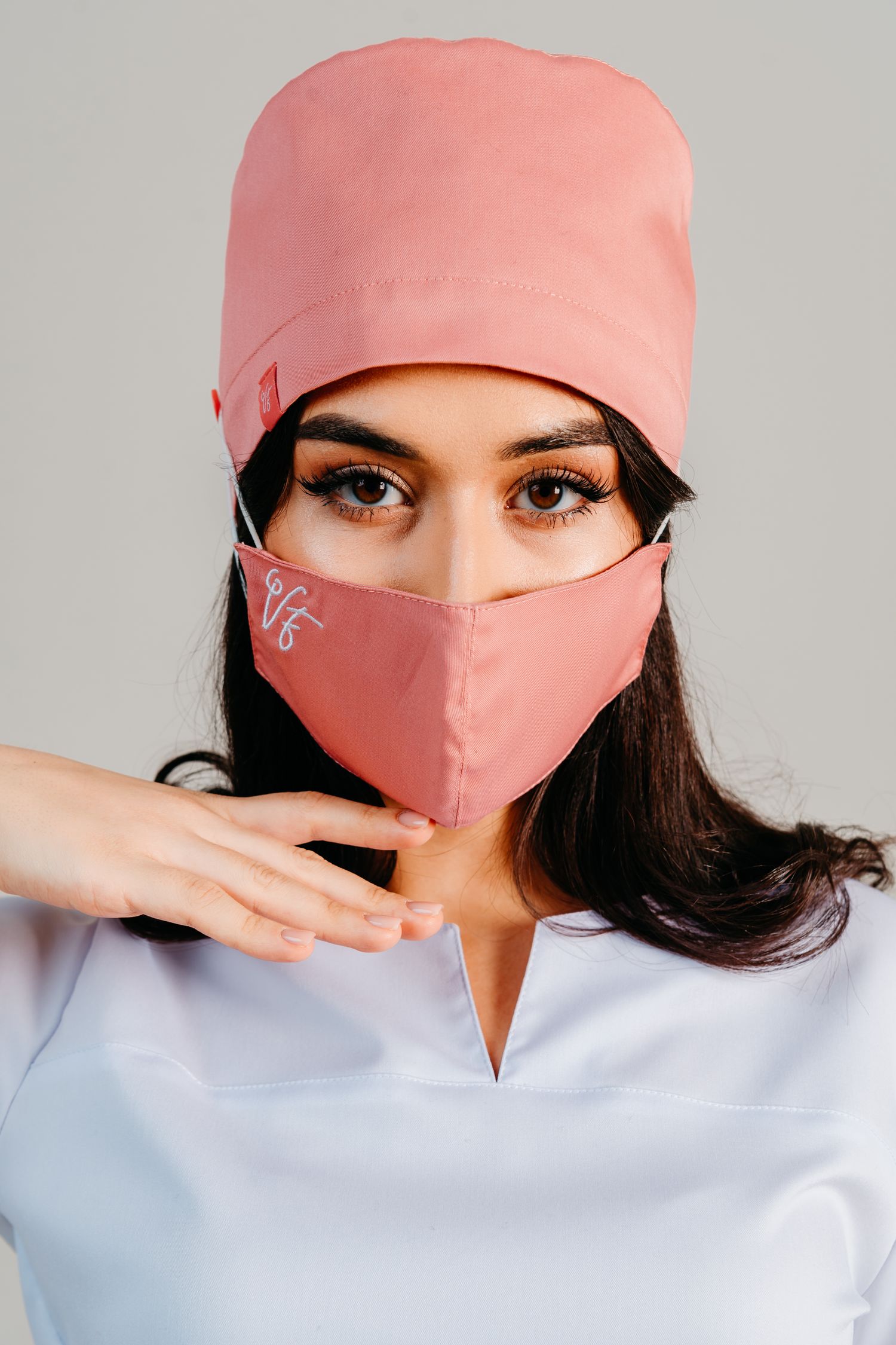 По боковым сторонам колпака расположены по одной пуговице, которые используются для фиксации маски. Это обеспечивает дополнительную защиту и безопасность при работе в медицинских учреждениях.